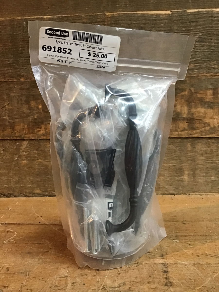 8 pack of premium 5" center-to-center "French Twist" style cabinet pulls by MNG Hardware. Come with a great looking oil rubbed bronze finish. Great for revamping a cabinet or dresser for a great deal! These puppies retail for over $17 a pop!