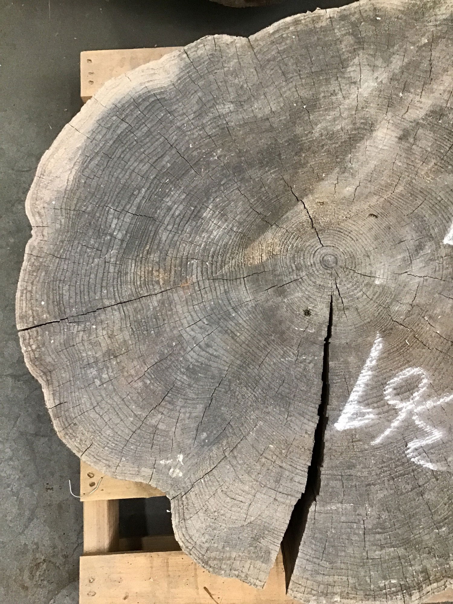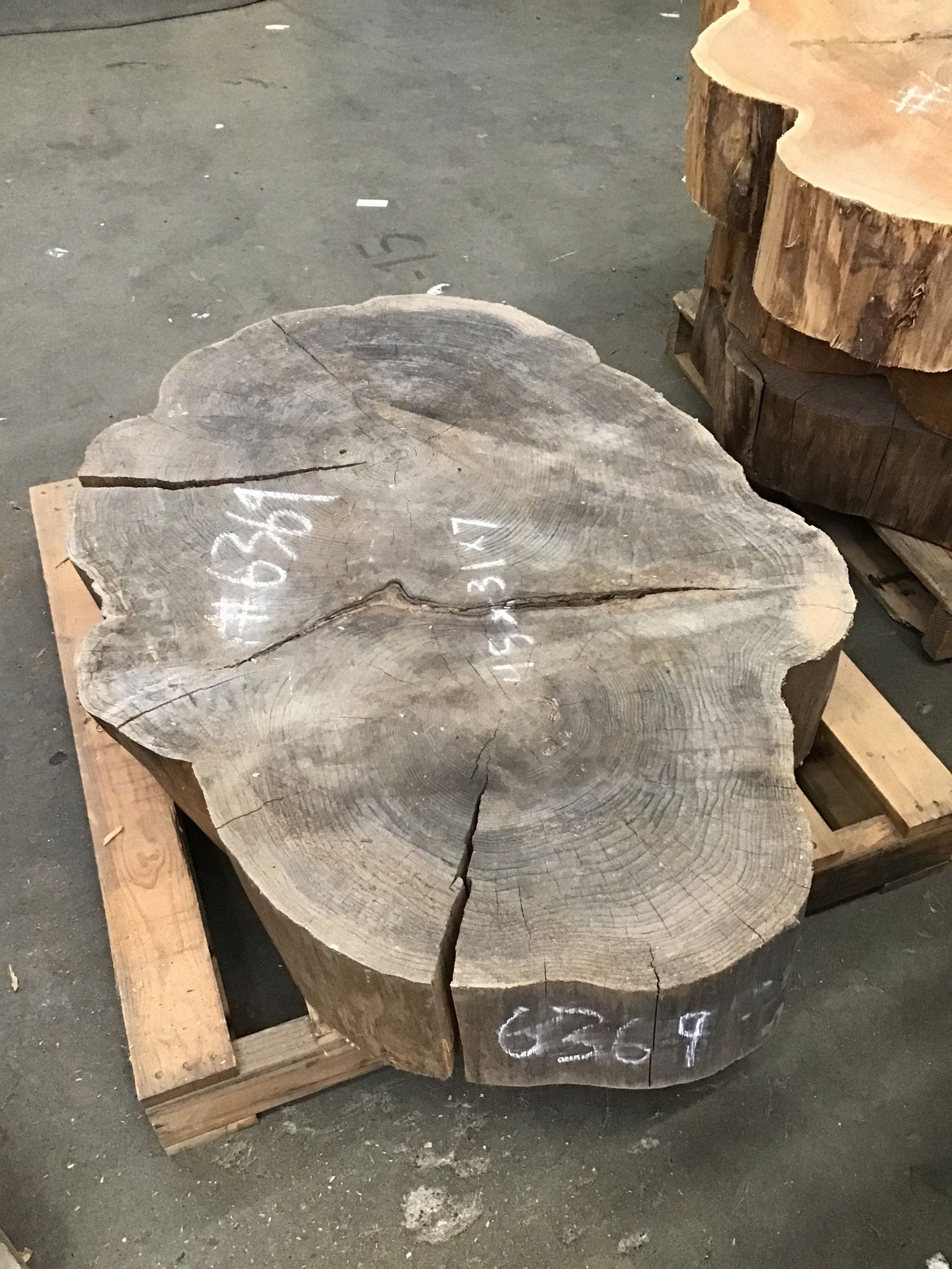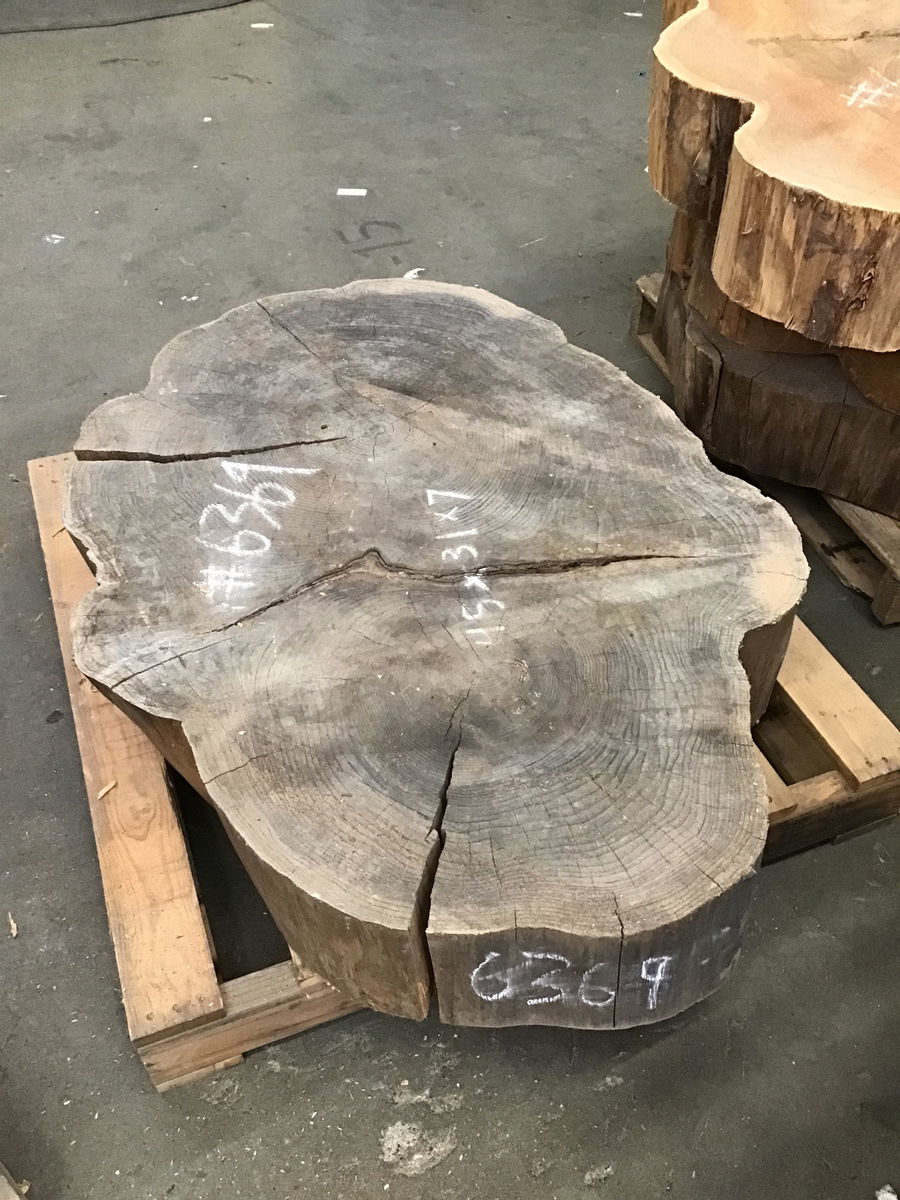 Locally milled and kiln dried. This is a section of a GIANT cedar flared cookie. It has some checking but is overall pretty stable with no egregious center rot. Would make a great side table.