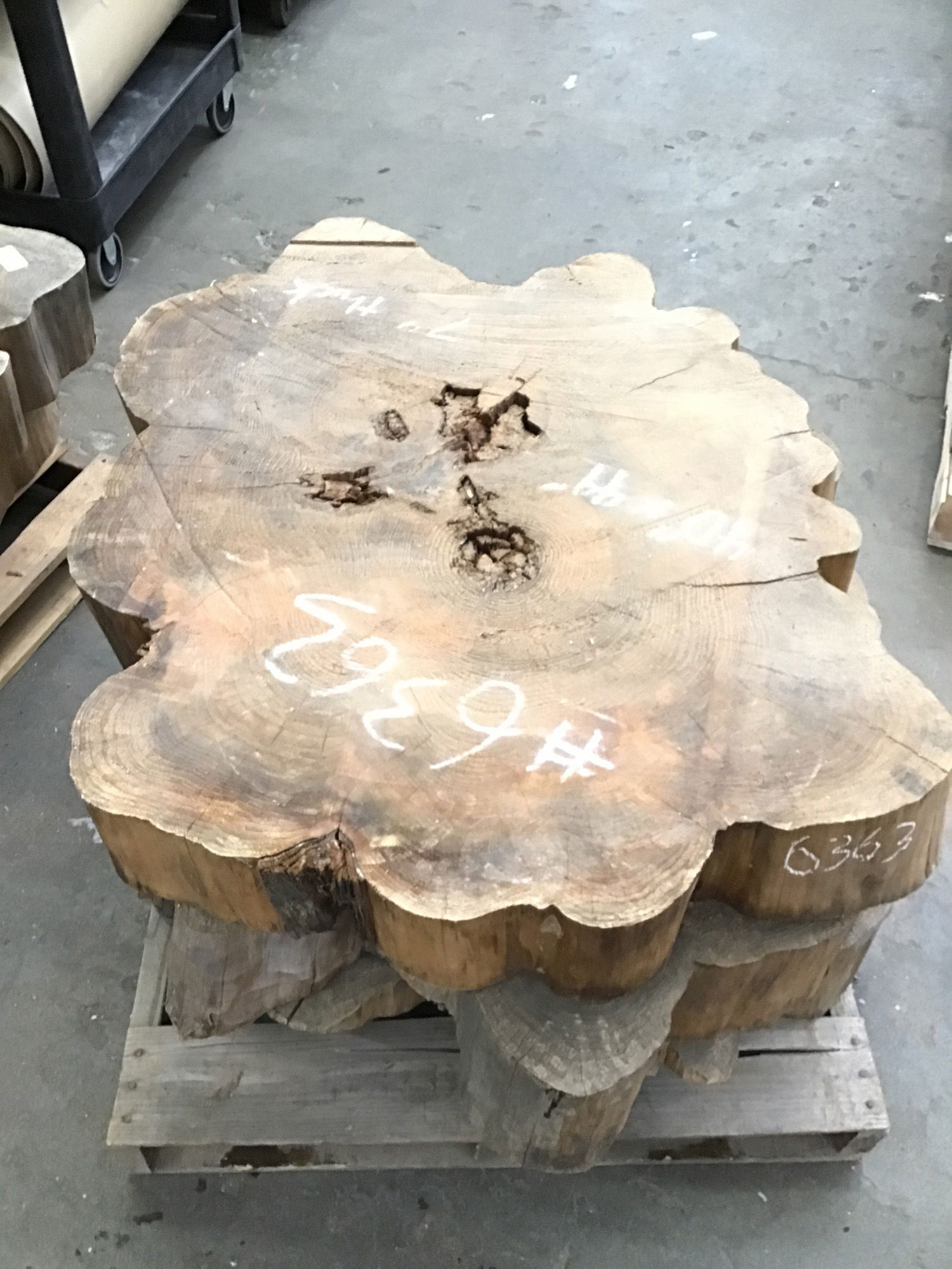 Locally milled and kiln dried. This is a section of a GIANT cedar flared cookie. Appears stable overall but does have a bit of center rot which is reflected in the price.