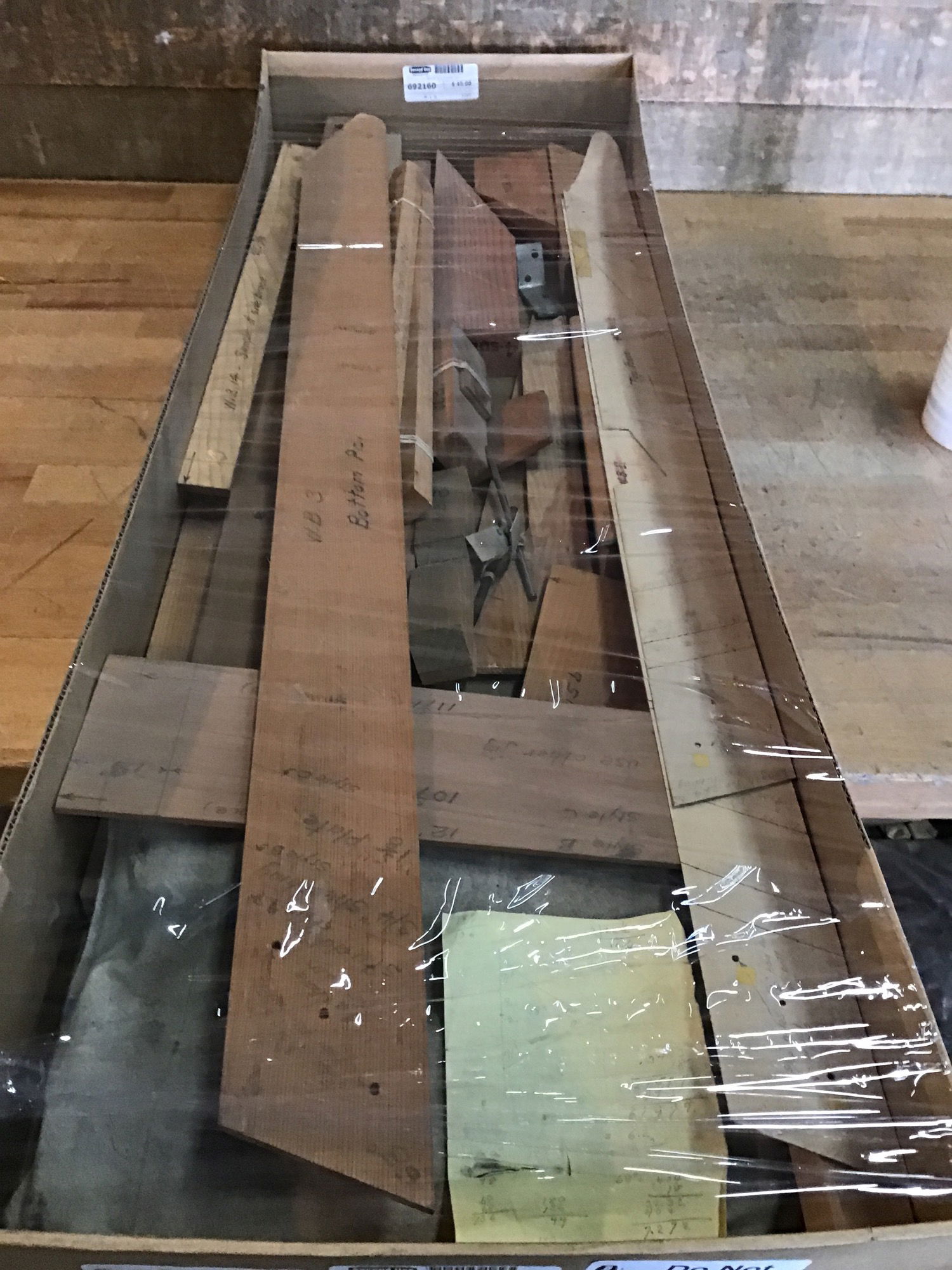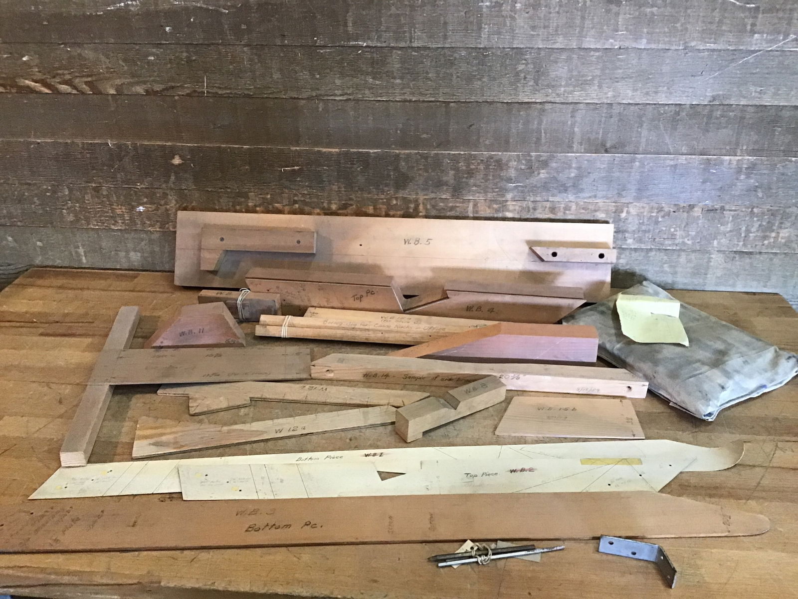 Vintage box of jigs for making wall brackets, from the Willits Brothers original shop. A great mix of hard and soft wood smalls (great for projects outside of boats!)