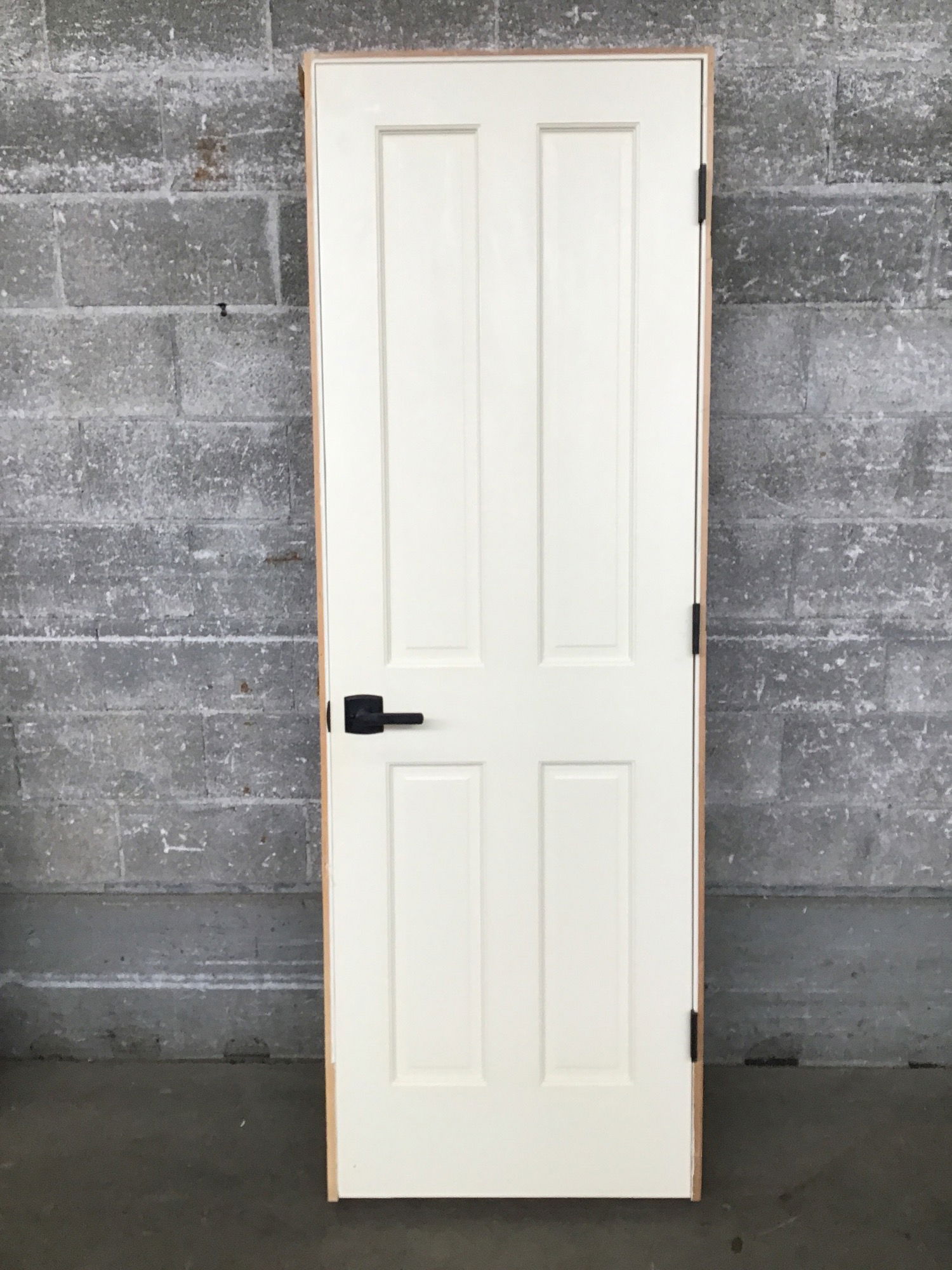 Very clean raised six panel interior door with nice black finished hardware. Comes in a jamb for a 2x4 wall.