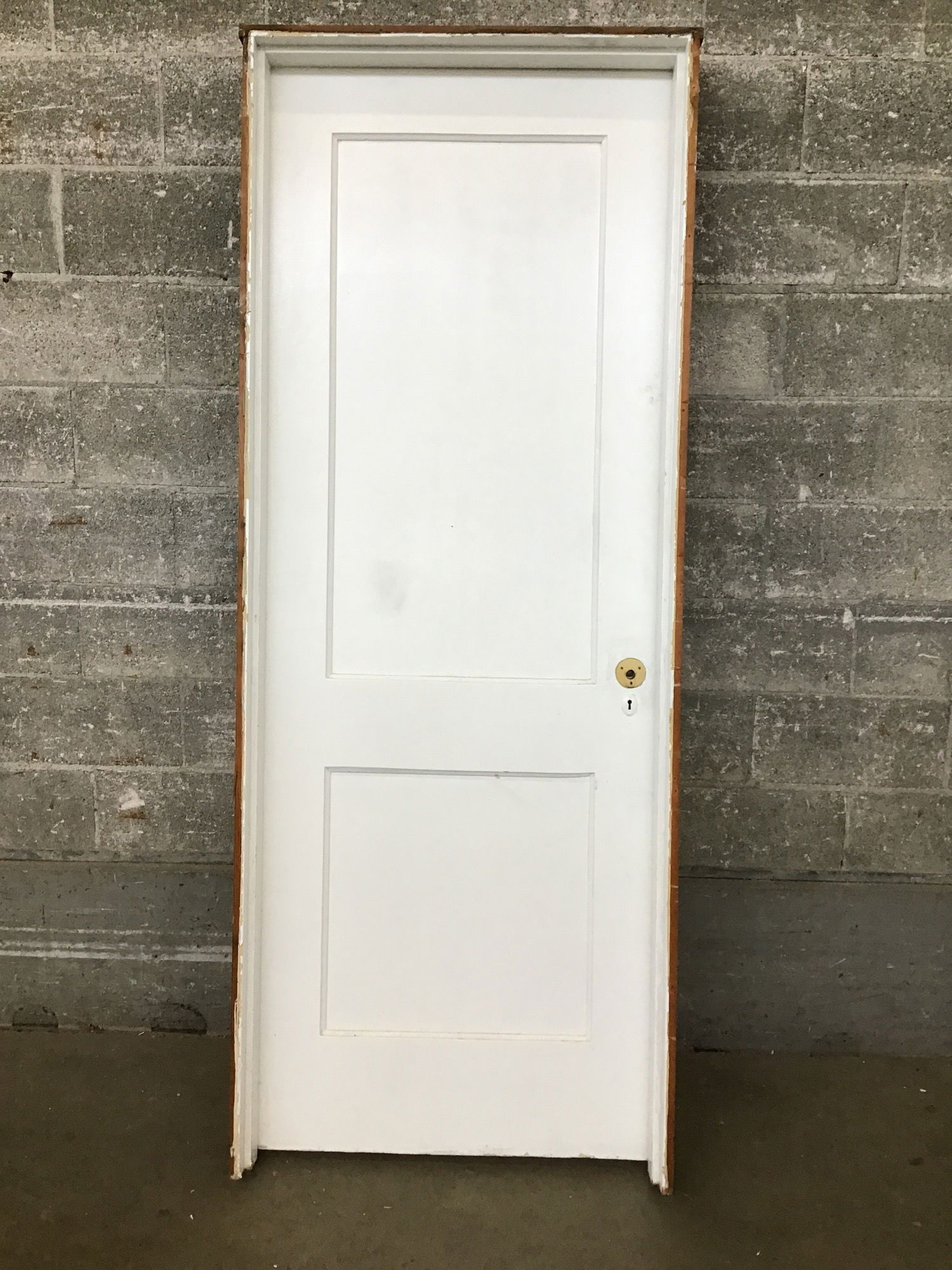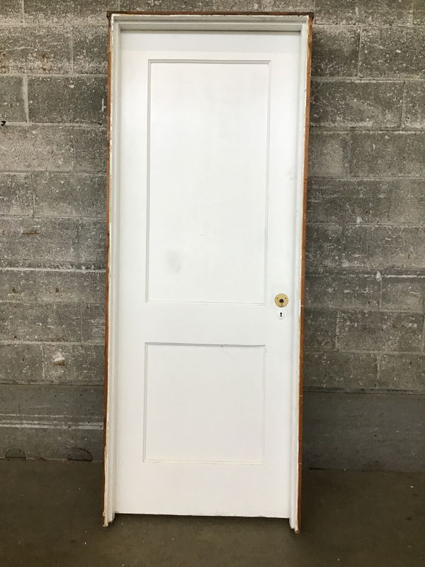 Vintage in-jamb two-panel door painted on both sides.