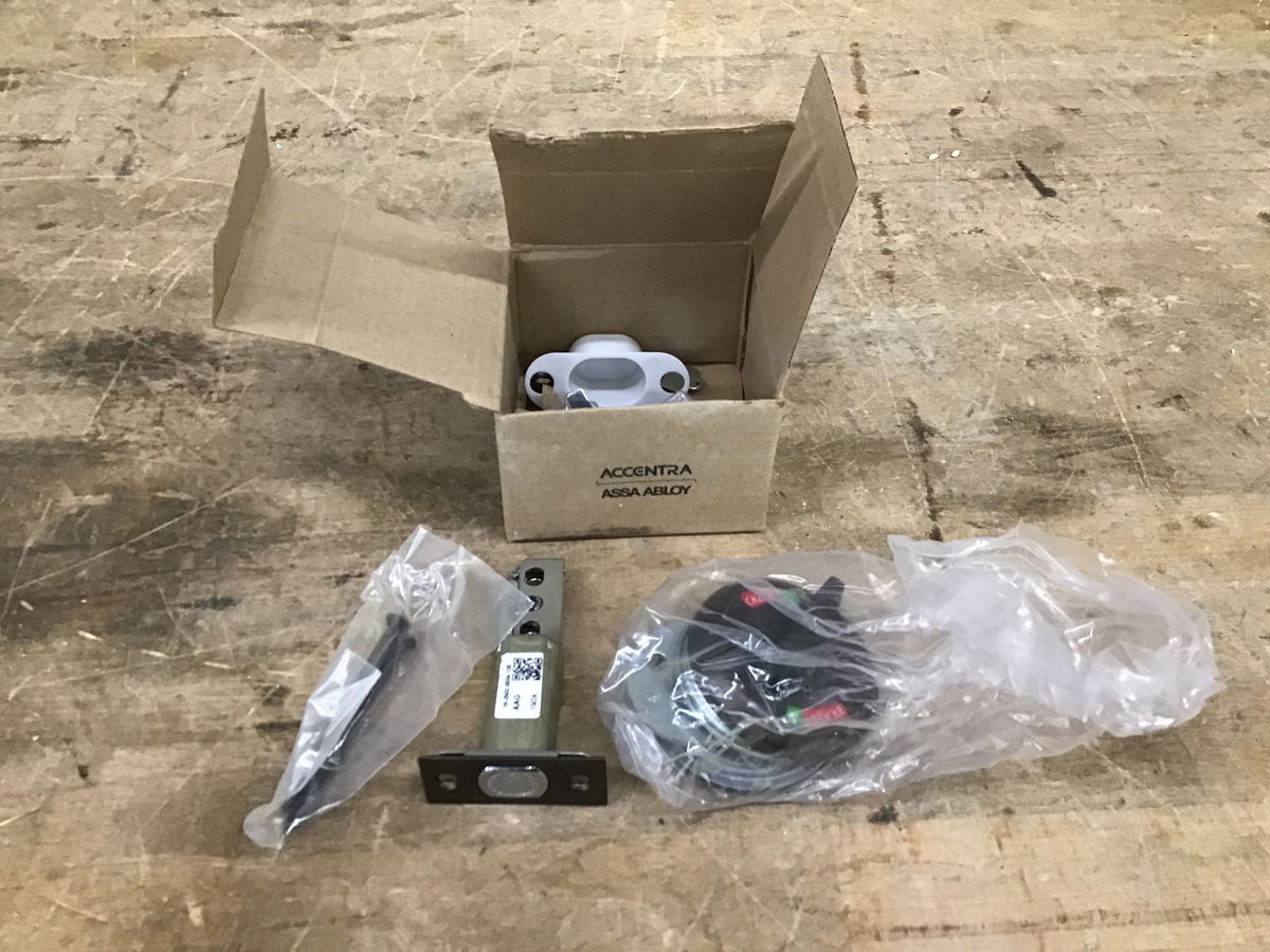 Accentra (formerly Yale) occupancy indicator deadbolt in an attractive dark bronze finish. Great for single-occupancy restrooms, changing rooms, or just letting your neighbors know if you're home! Just kidding. don't use this on your front door. Sells for around $50 new.