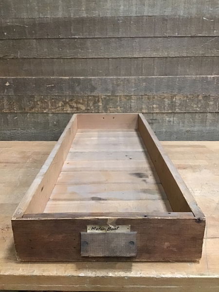 Vintage Fir wood drawer with divided sections and cute wood handles, from the Willits Brothers original shop. A great piece of local history to help keep your work space organized!