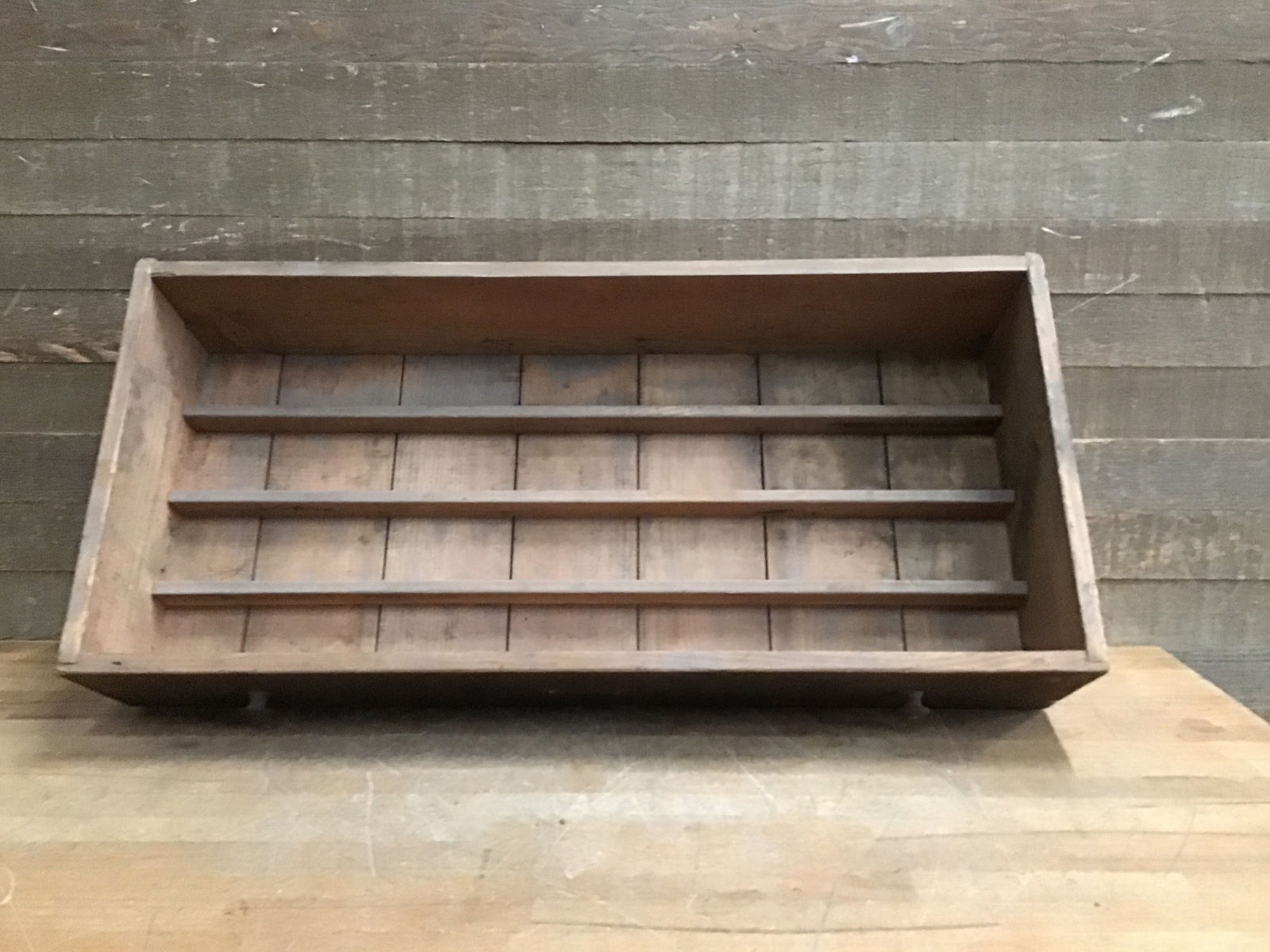 Vintage Fir wood drawer with divided sections and cute wood handles, from the Willits Brothers original shop. A great piece of local history to help keep your work space organized!