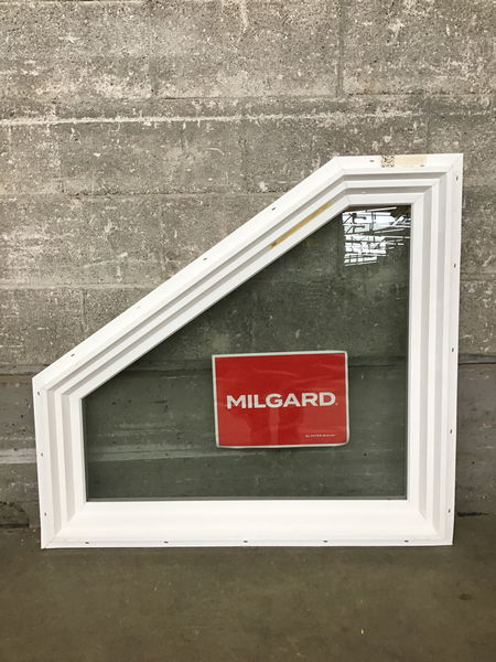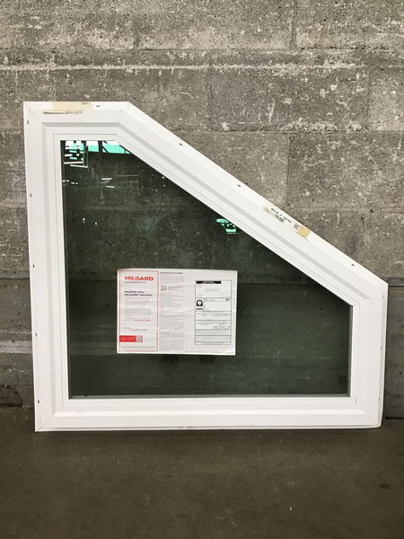 2023 Milgard trapezoid fixed window with energy tags attached.