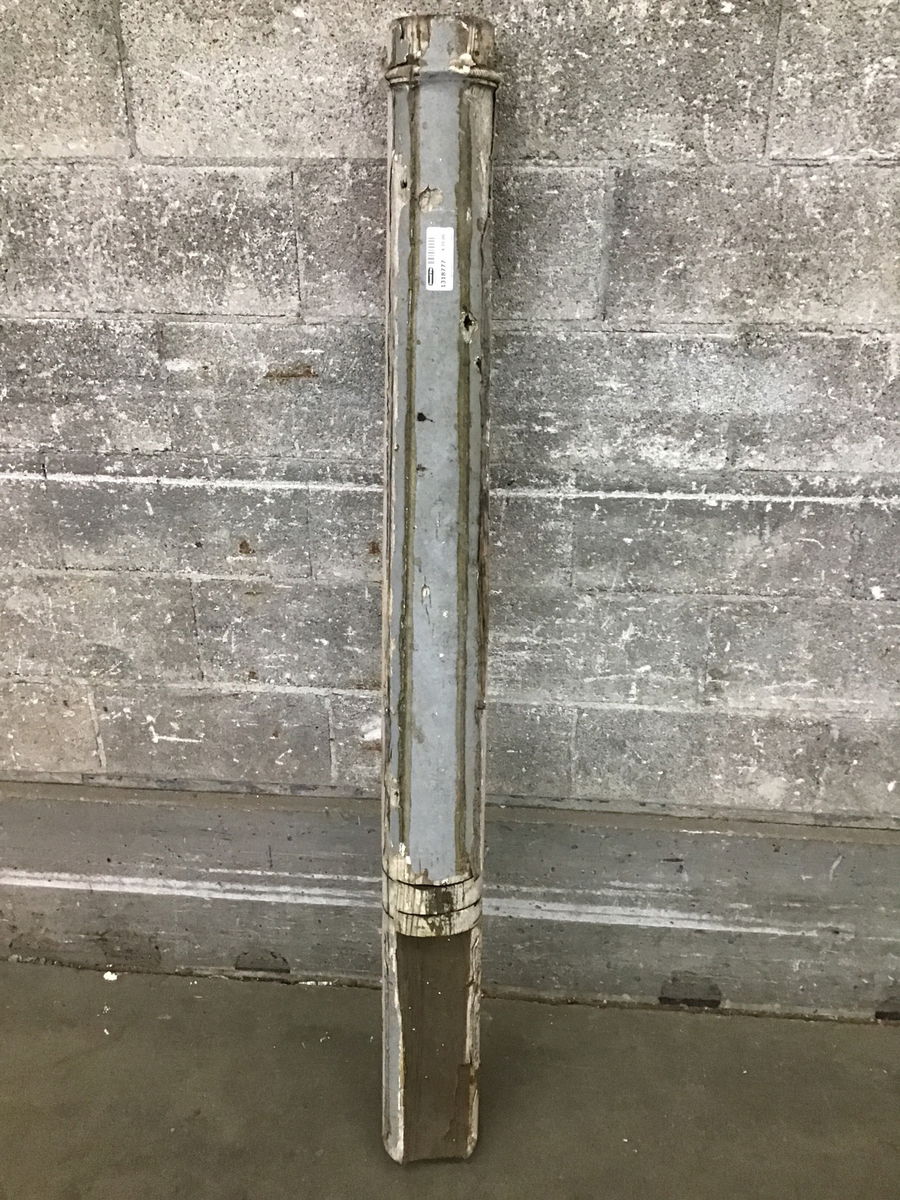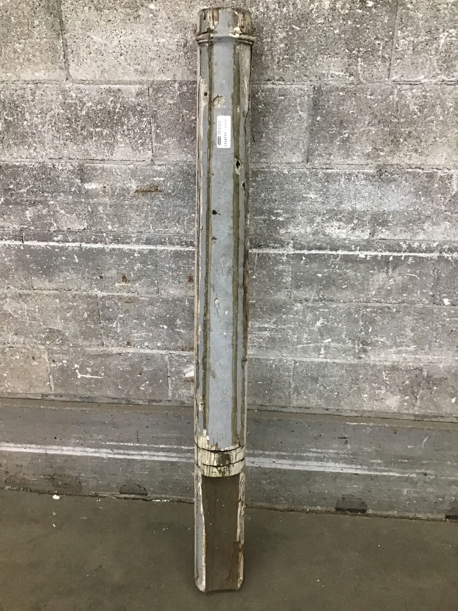 This is an old wood column that is solid fir as far as I can tell. Has an aging paint job that is peeling off.