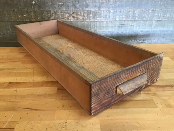 Vintage Fir wood drawer with cute wood handles, from the Willits Brothers original shop. A great piece of local history to help keep your work space organized!