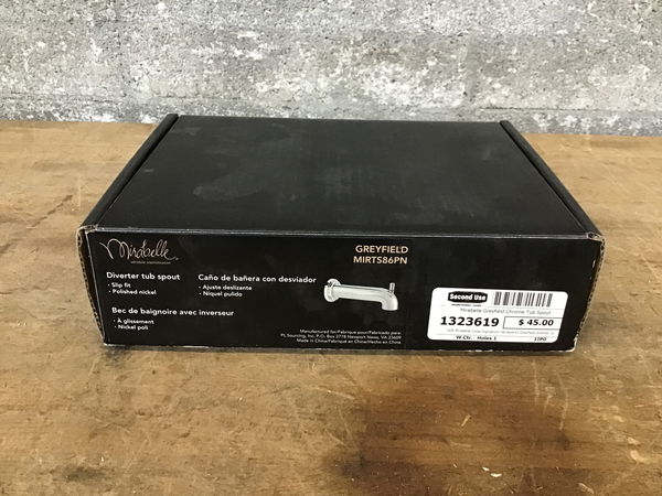 NIB Mirabelle (now Signature Hardware) Greyfield diverter tub spout in chrome. Retails for $100 at Ferguson.