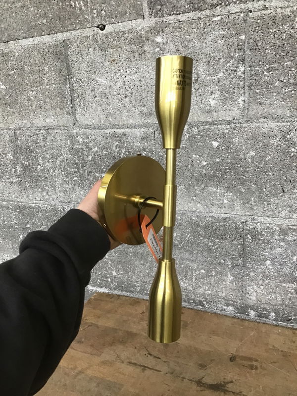 This is a double wall sconce with a warm brass finish. New, never installed.