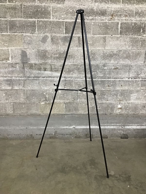 Telescoping black aluminum display easel that is both lightweight and easily adjustable. This came to us new in the box and retails online for around $35. Photo may be representational.