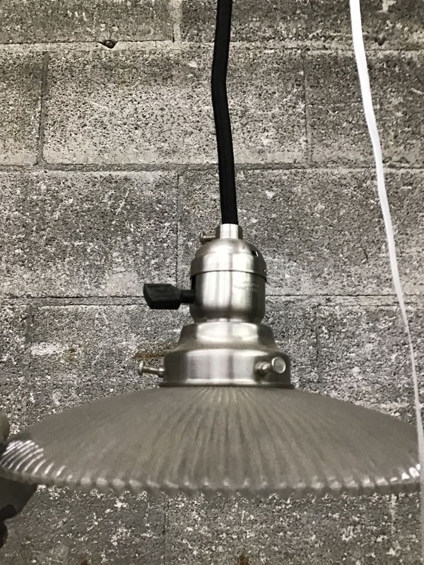 Rejuvenation Pendants w/ Vintage Holophane Shades