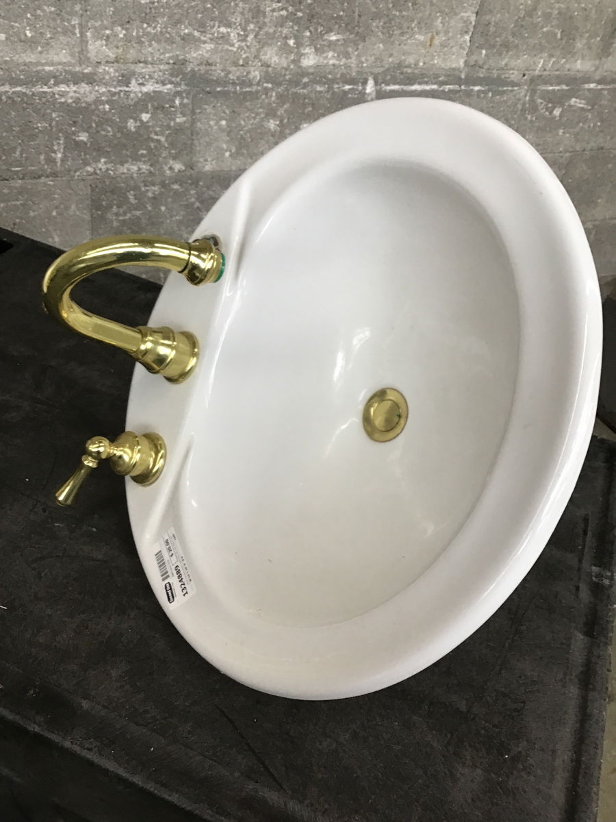 White porcelain drop in bathroom sink. No chips or pits.