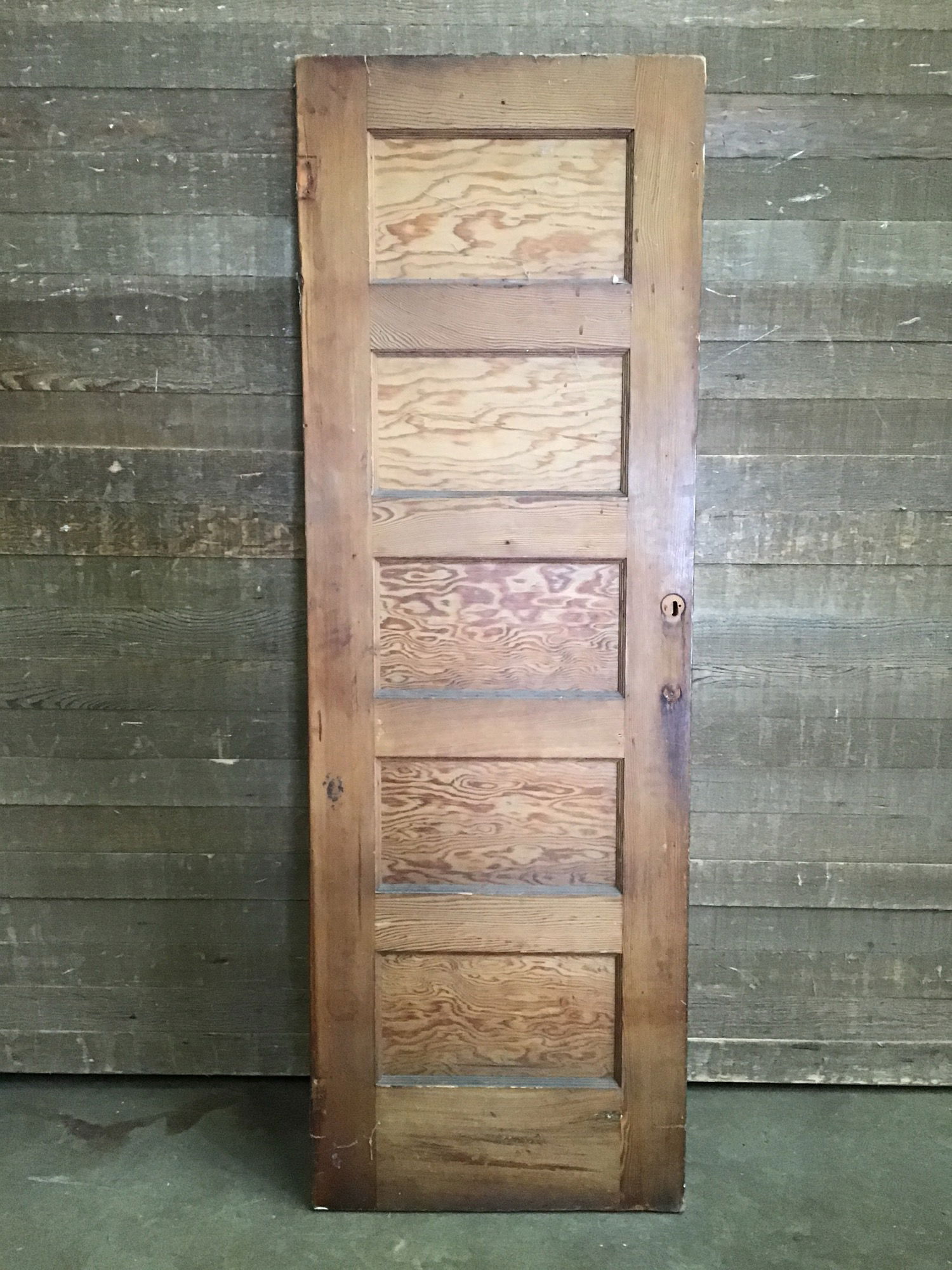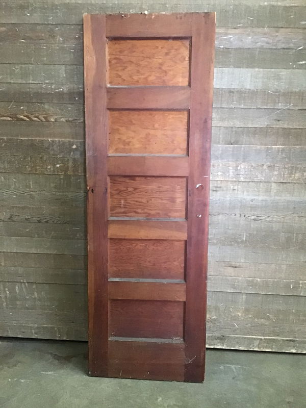 Little pantry door with five recessed panels and no hinge cuts. Some minor cosmetic damage, but overall pretty clean and sturdy for its age. This little guy would be perfect for a playhouse, shed, or a pantry in an old home!