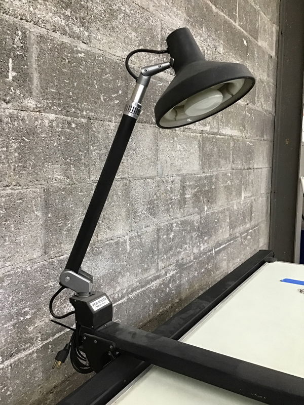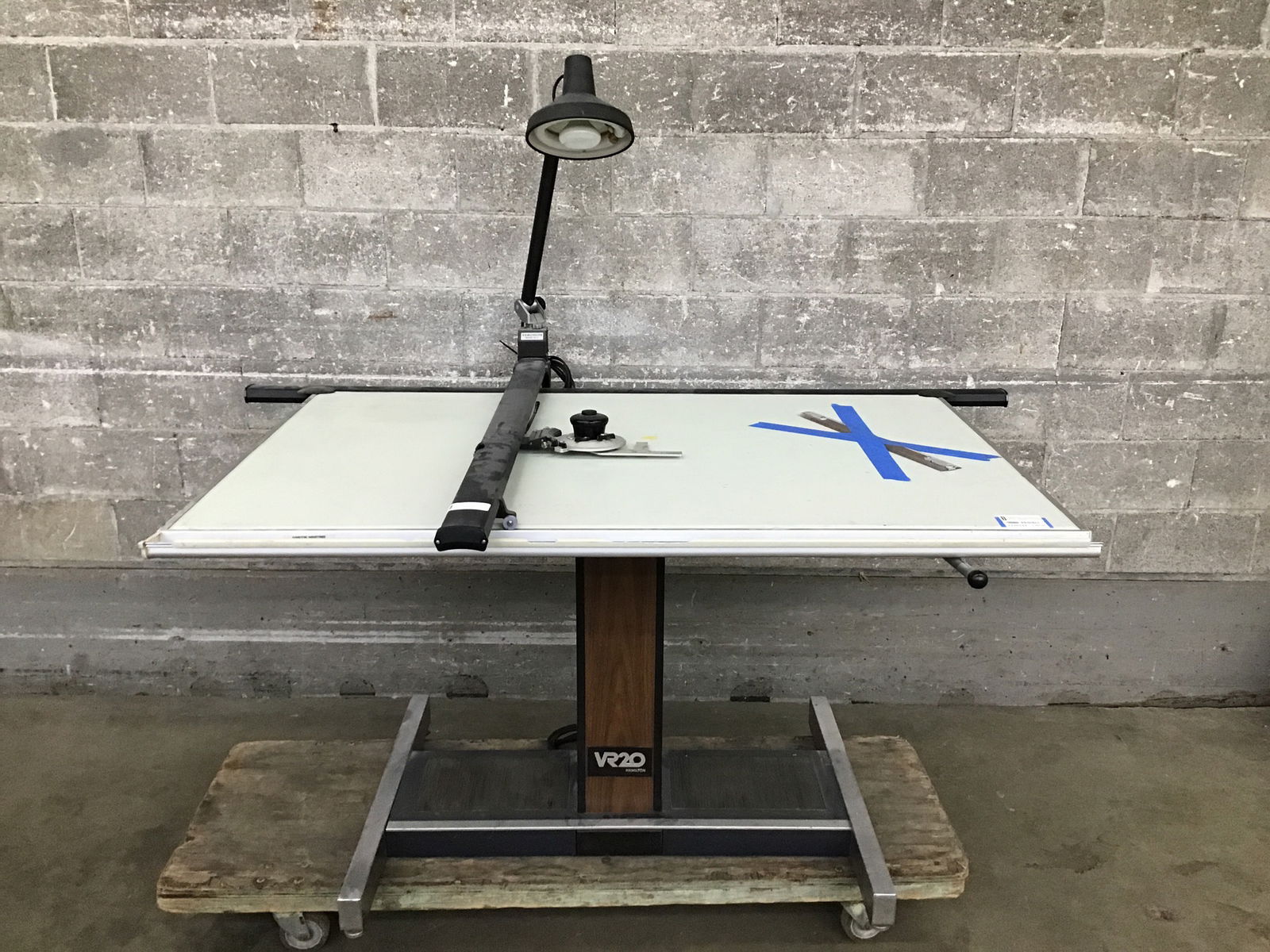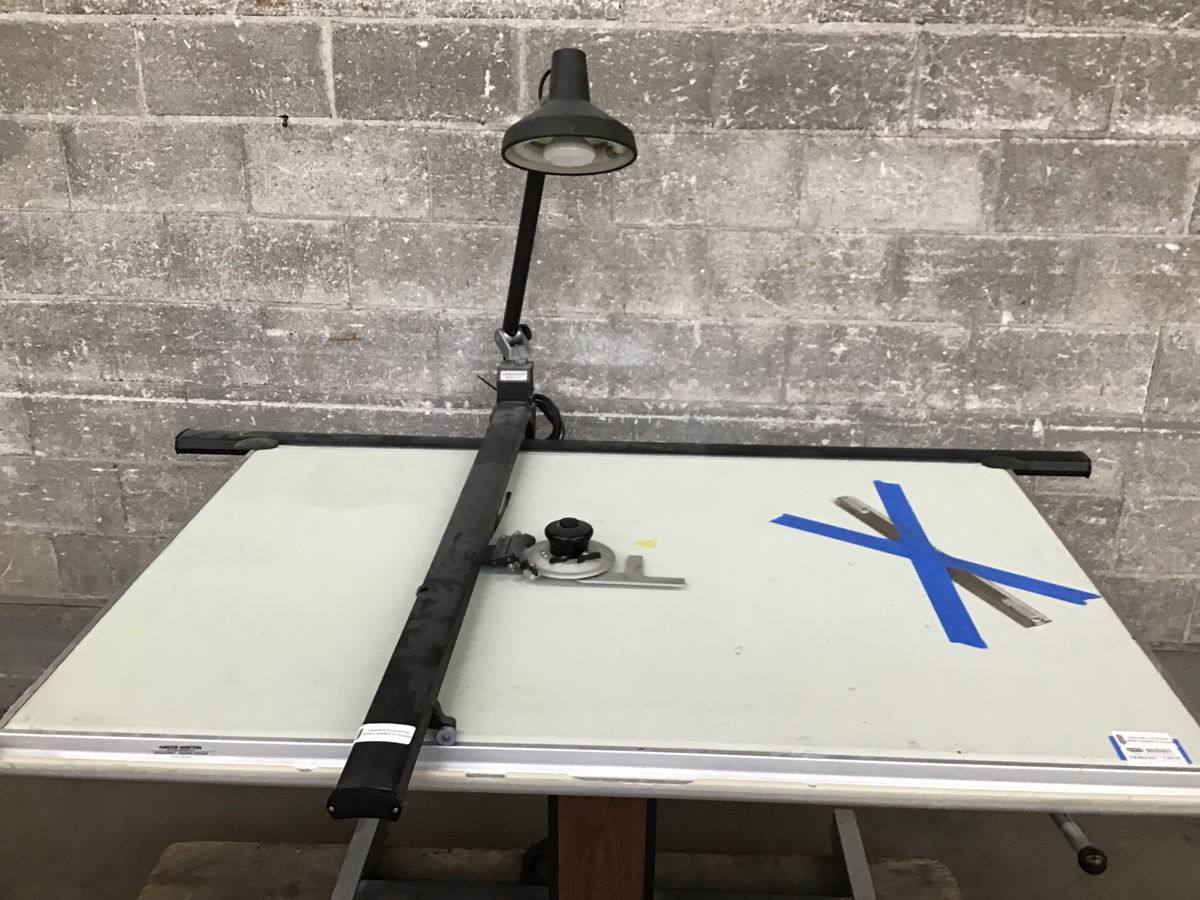 Functioning and well-maintained Hamilton VR20 adjustable height drafting table with a full compliment of drafting table accessories including a functioning Vemcolite VL-4 drafting table lamp that adjusts in multiple directions. This setup is ready to go in your studio just grab a couple strong folks to help you move it! It is mid-century thing of beauty!