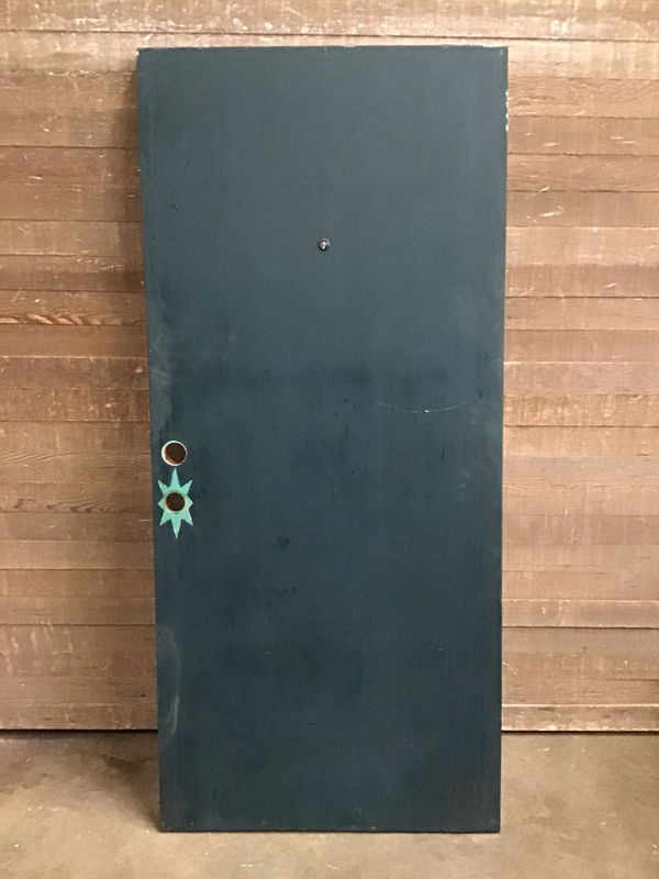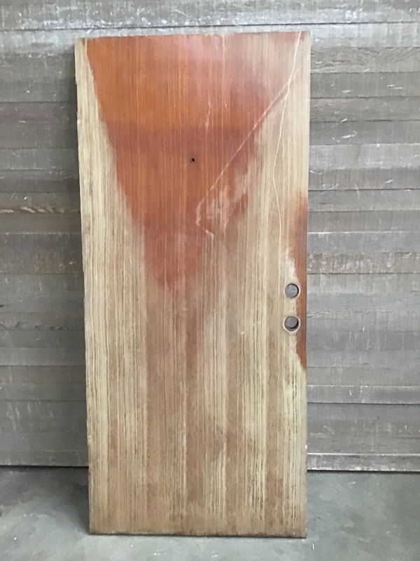 Solid core door with CVG Fir veneer. Painted green on exterior side and clear on interior side. Will need some sanding and refinishing, since the clear finish is practically off of half of the door from wear.