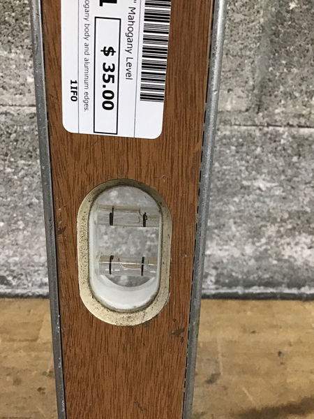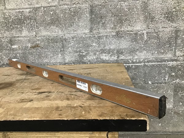 4' Mayes level with a mahogany body and aluminum edges. All bubbles are still intact.