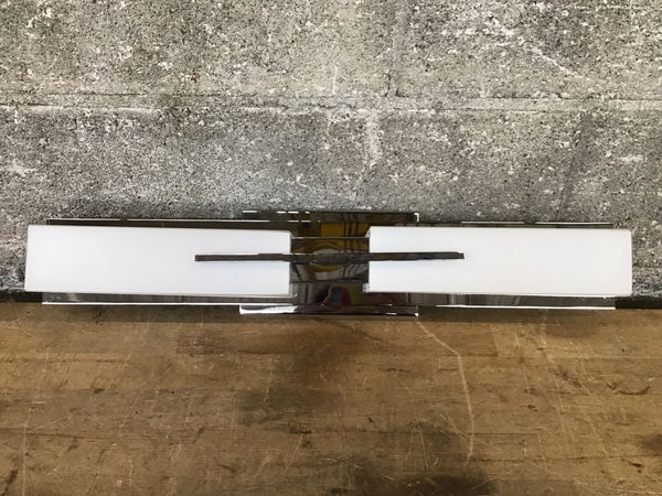 Clean, crisp, modern chrome and frosted glass wall sconce, mounting hardware included.