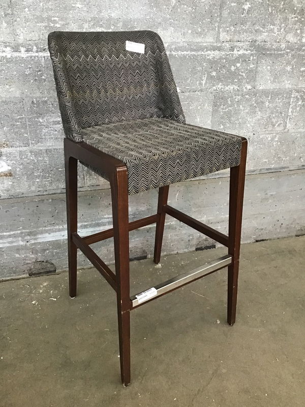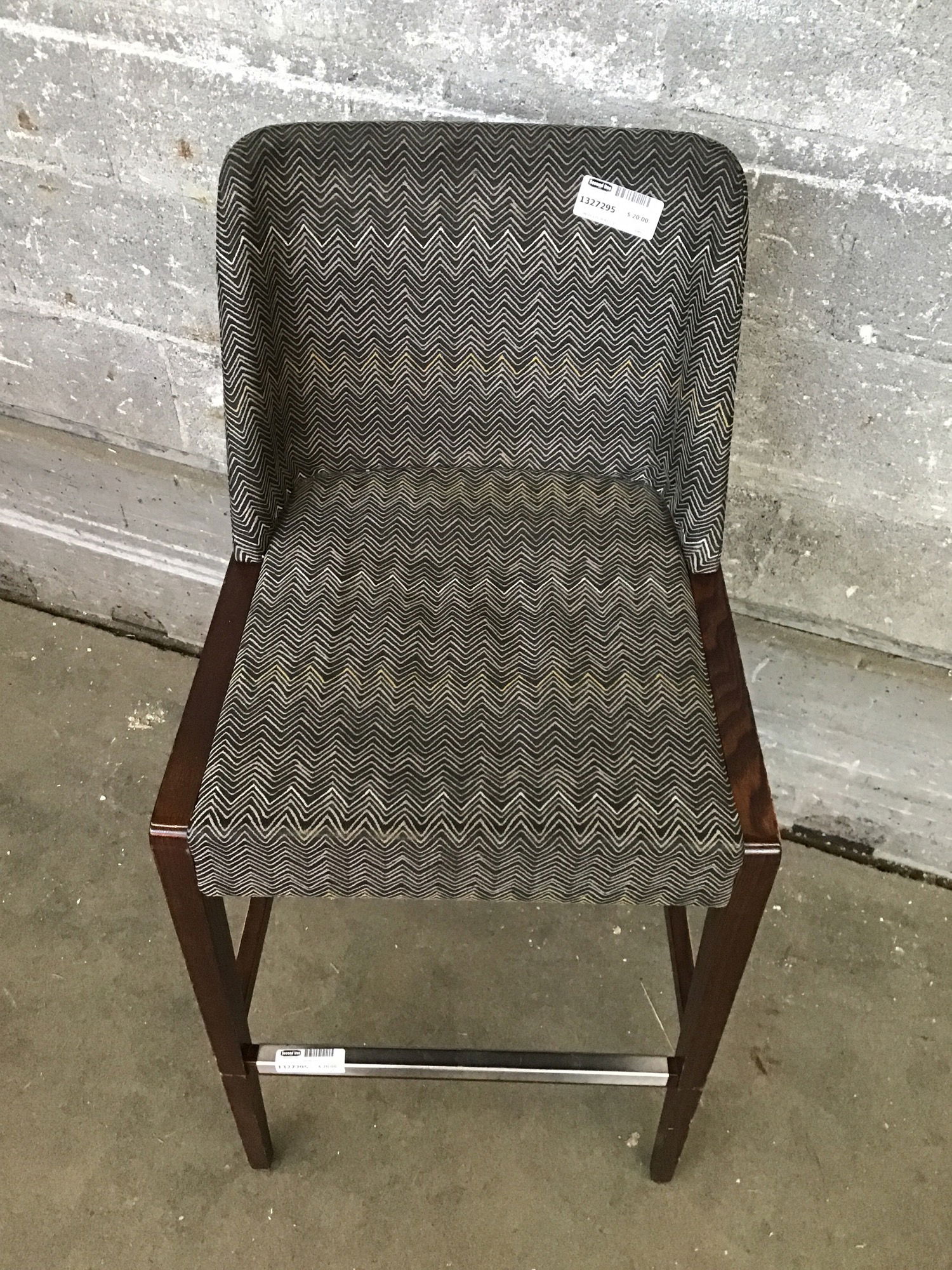 Structurally sound bar stool that's showing some cosmetic wear from use.