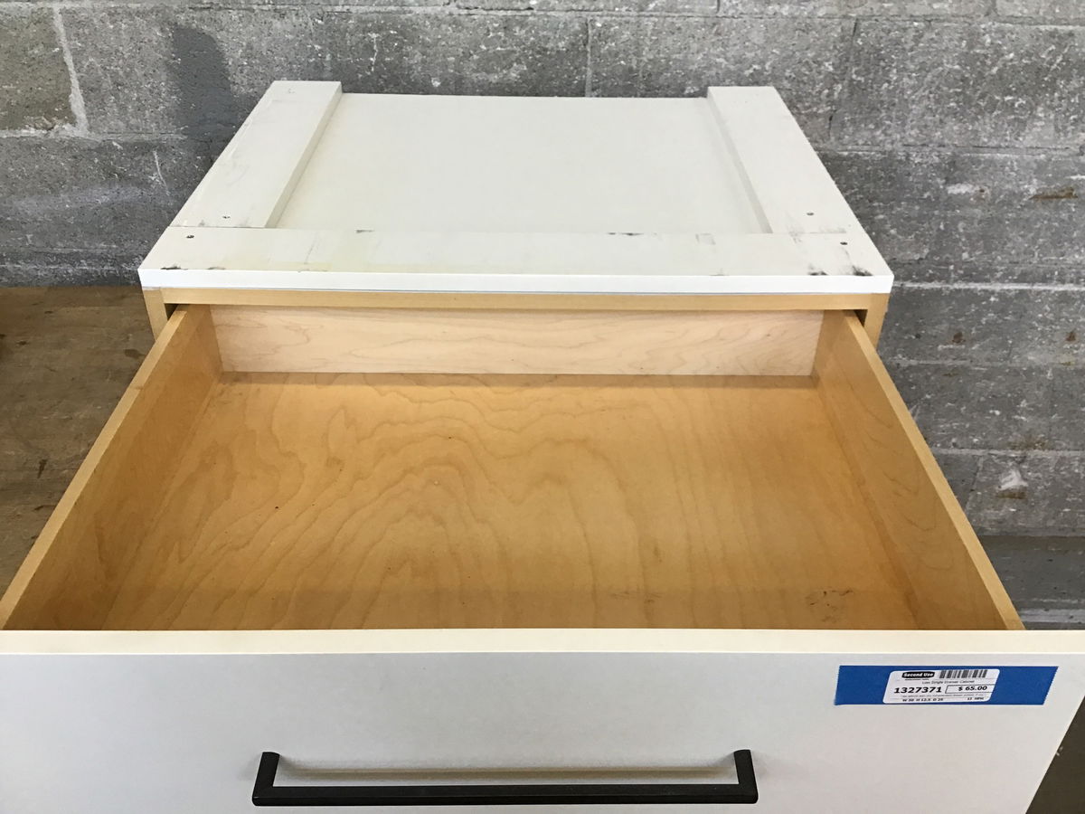 Low cabinet with one full-extension drawer pullout, if you raise the height a bit it would make a great shoe changing station-just add a cushion!