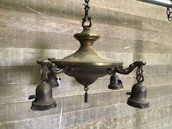 Very beautiful vintage hanging light that needs some love! This is a two bulb, brass light. In need of new sockets/wiring, canopy, and shades. Price reflects. If you want this light, but not sure how to rewire, check out our lighting services in Seattle here!
