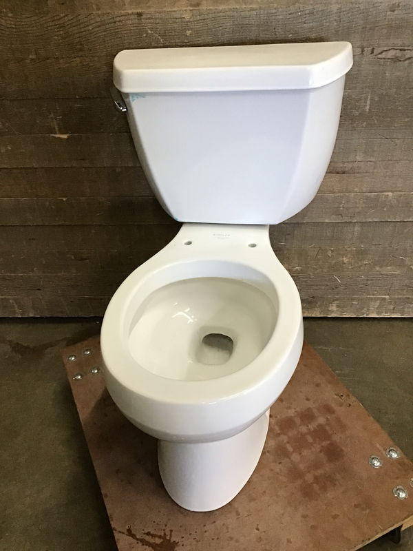 White Kohler toilet with a 1.6GPF tank. Needs a seat and a clean, but otherwise looks to be in good, used condition.