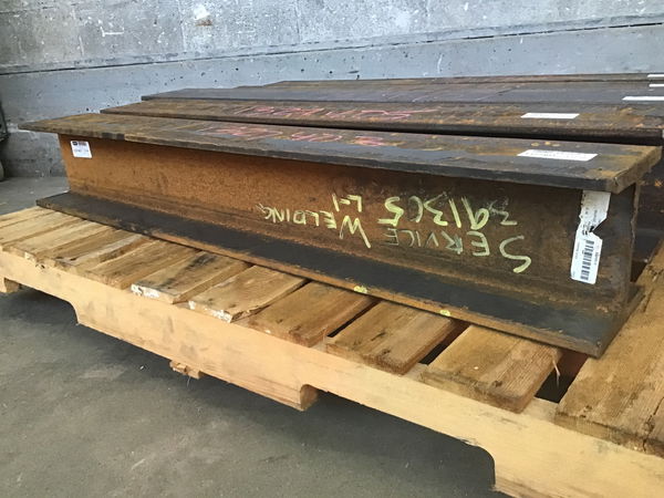 Steel I beam with 5/16" thick center and 7/16" thick top & bottom plate.
