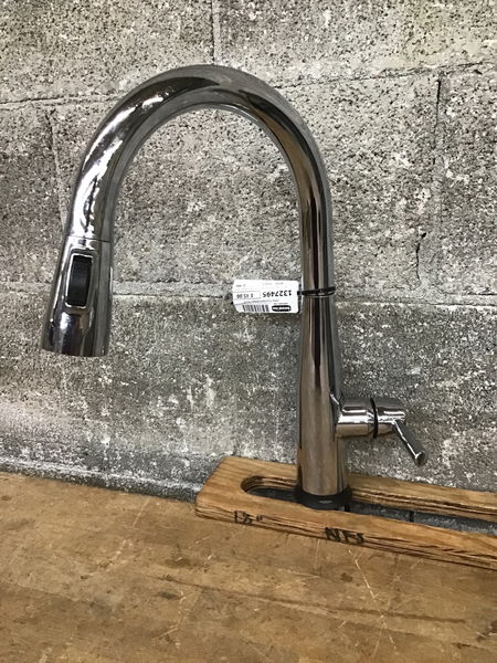 Clean, chrome Delta touchless kitchen faucet, appears complete, sold untested.