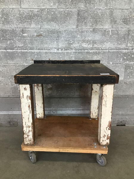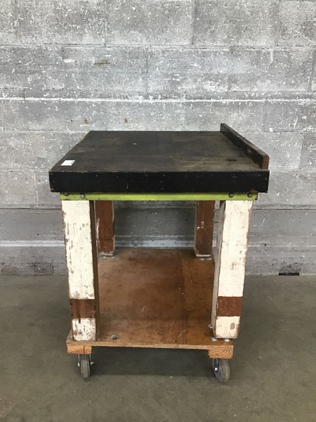 A sturdy, handmade shop table. At 25.5in tall, it’s a good height to hold a drill press or other bench top tools, or it’s close enough to desk height for seated shop work. Could even work as a shop table for kiddos learning the ropes!