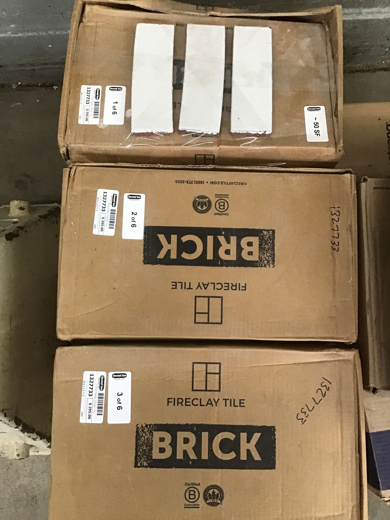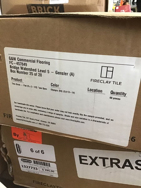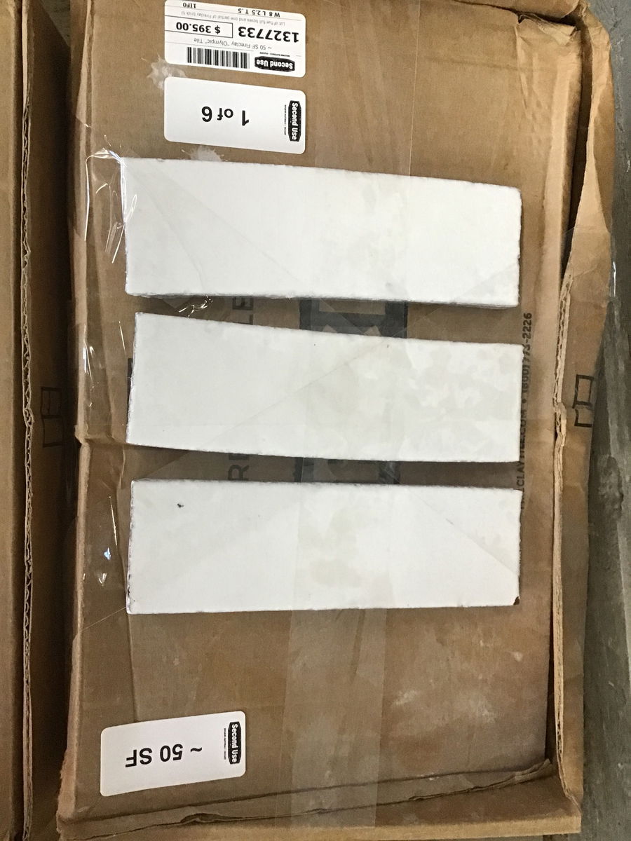 Lot of five full boxes and one partial of Fireclay brick tile in "Olympic," which is a rather soft shade of white. Would be great for a mantel, backsplash or so much more! If this isn't quite enough for your project, the same exact tile is still available on Fireclay's website for $22/SF.