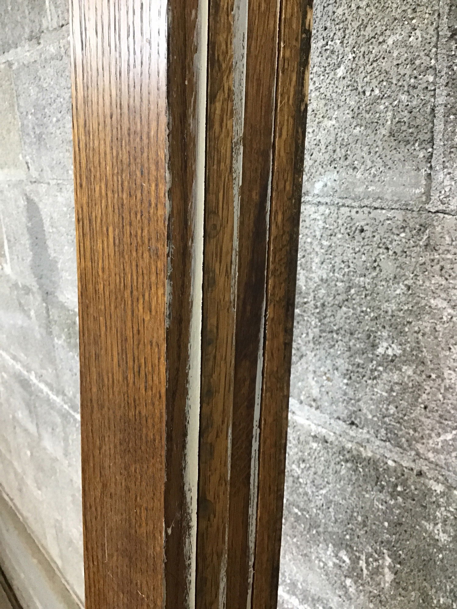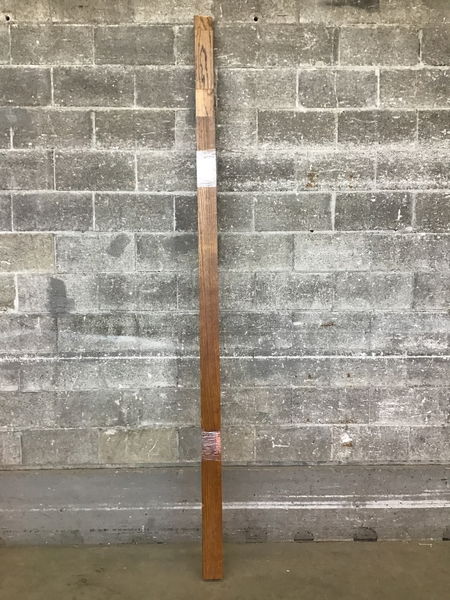 Reclaimed denailed oak 1x4 with a dark stain on three sides. Two @ 7' and two @ 8'.