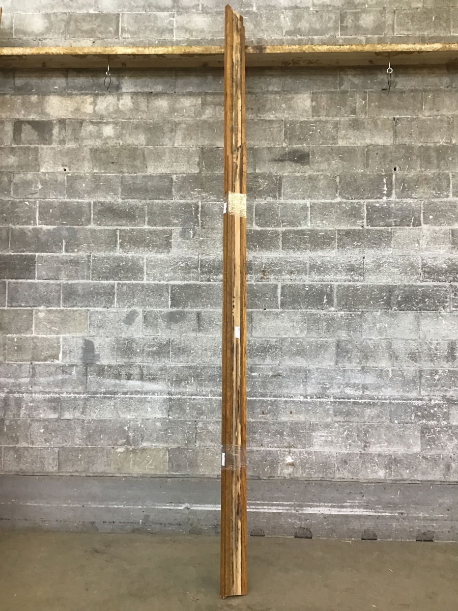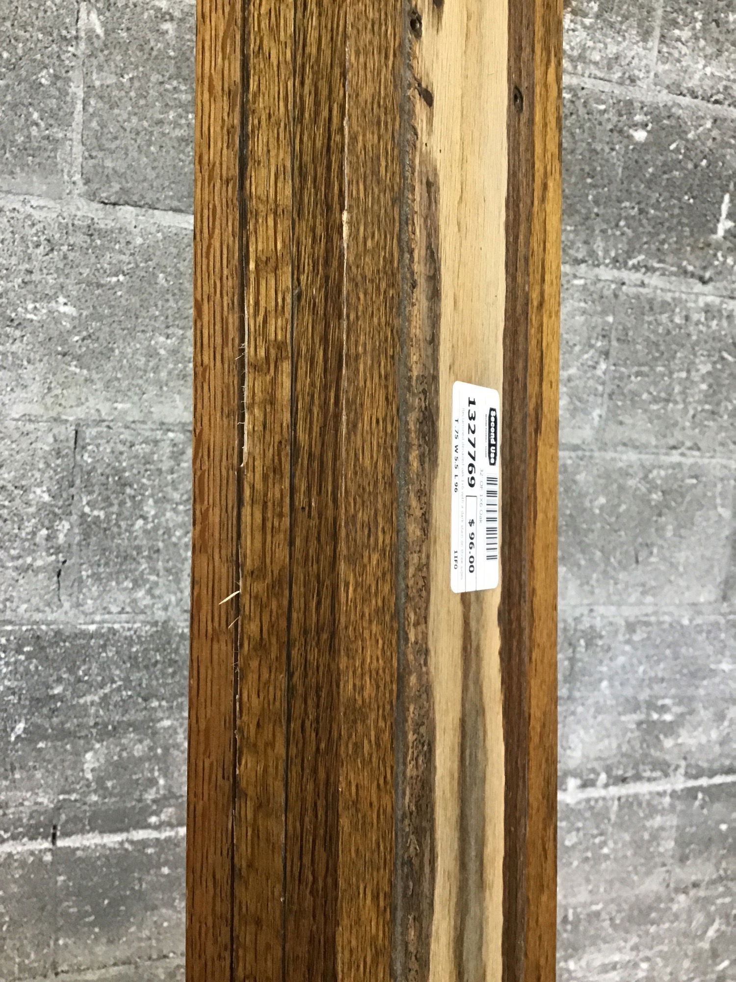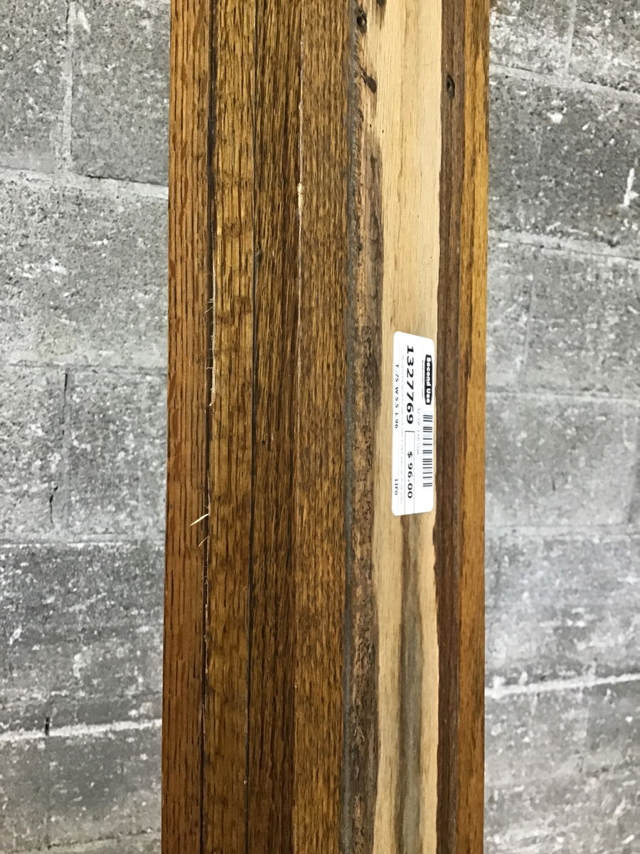 Reclaimed denailed oak 1x6 with a dark stain on three sides. One @ 8' and two @ 12'.