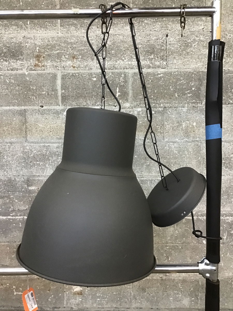 Biggy size IKEA pendant light with a brown finish. Price reflects the 9 1/2" wide mounting bar that fits inside the canopy is missing. Has ~43" of chain & cord.