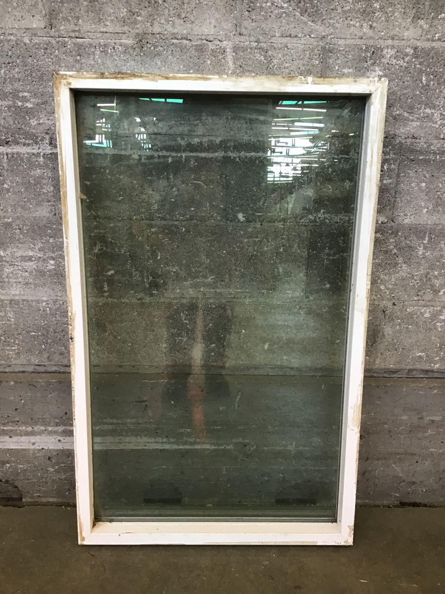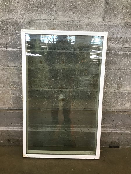 White vinyl fixed window with insulated glass. Could use a little clean up before install.