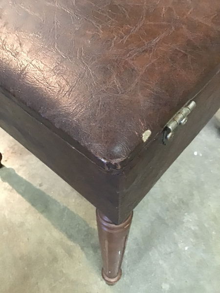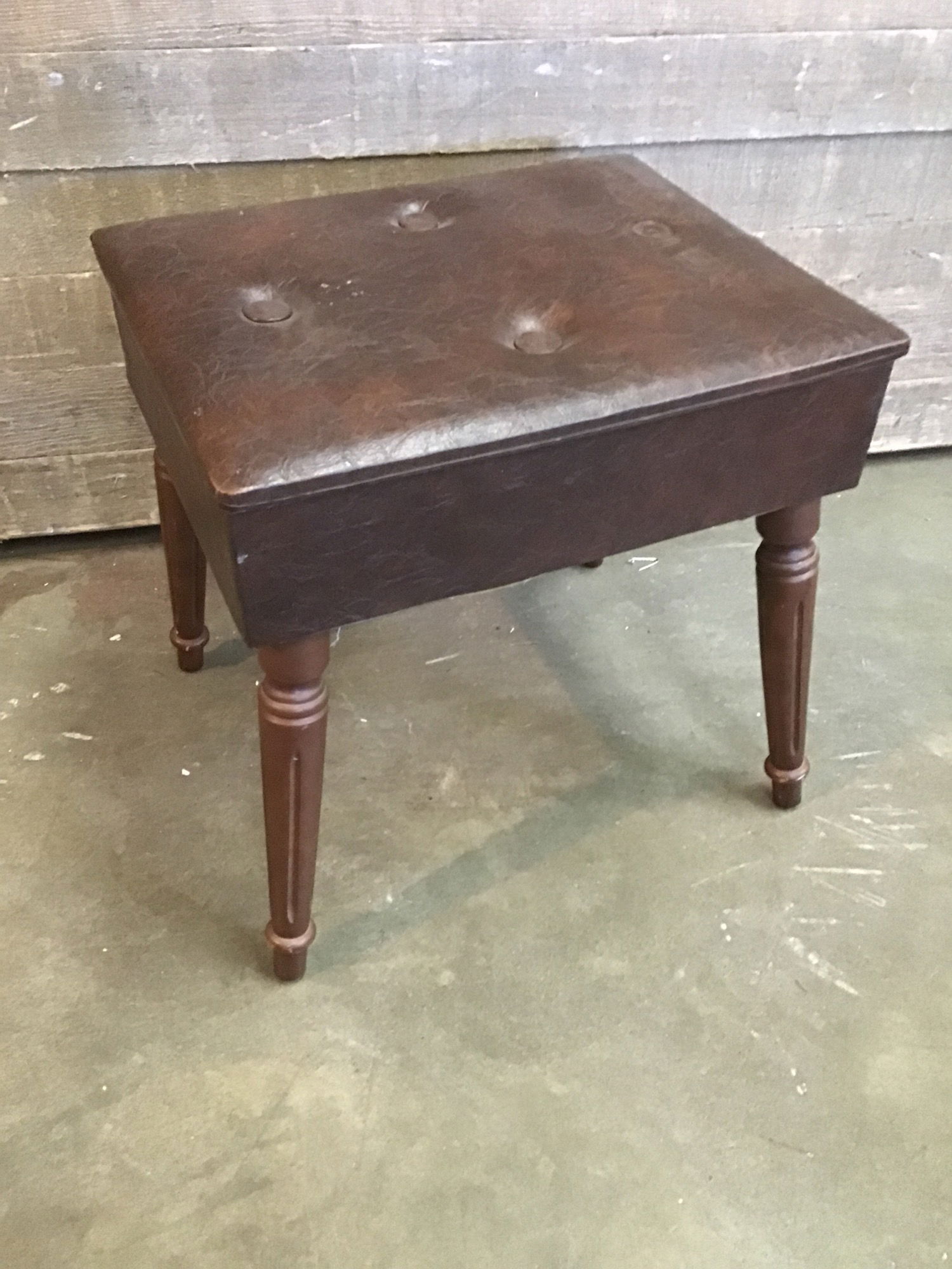 Vintage leather piano bench in fairly good shape. This opens for a little bit of storage. The seat is missing one button. The leather is in fair condition with some minor cosmetic damage on edges/corners. Price reflects condition.
