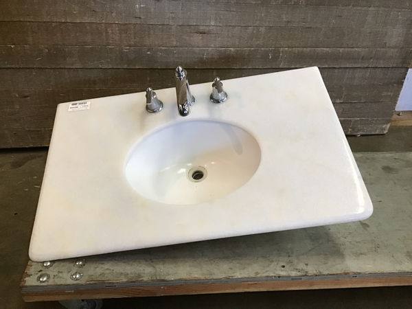Real quartz/quartzite vanity top with undermount sink and faucet. The faucet is the Cooper Widespread Bathroom Faucet by Signature Hardware, which alone retails for $360+.