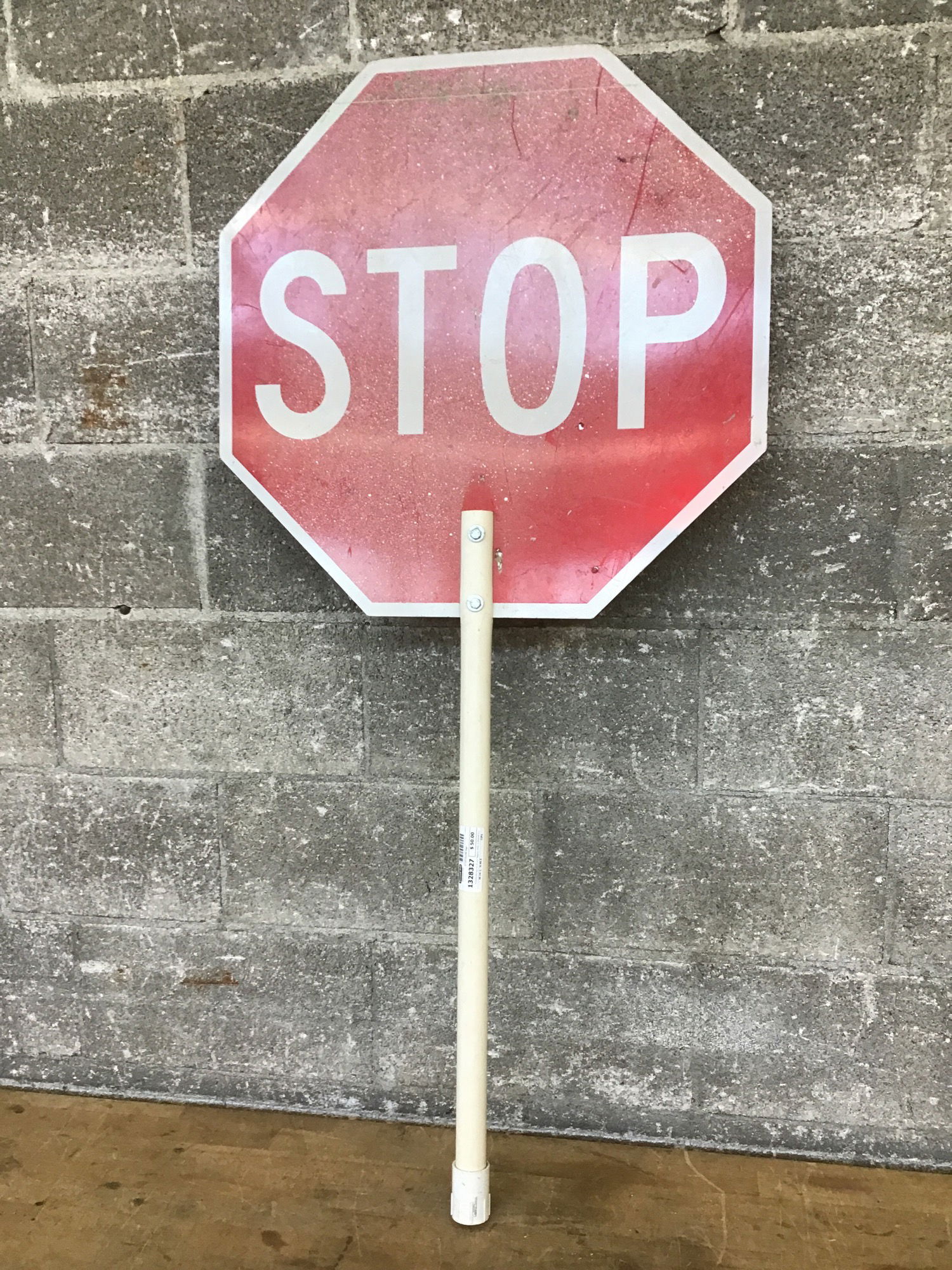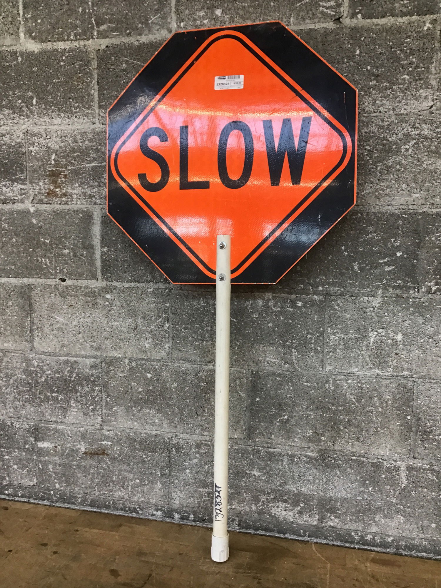 STOP/SLOW Sign for all your flagging needs. Is attached to a 30" long piece of PVC.