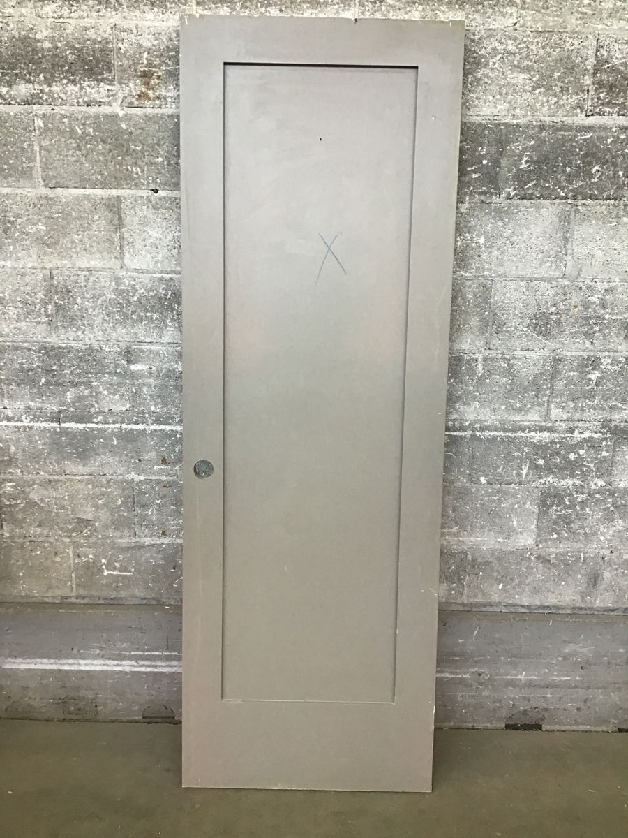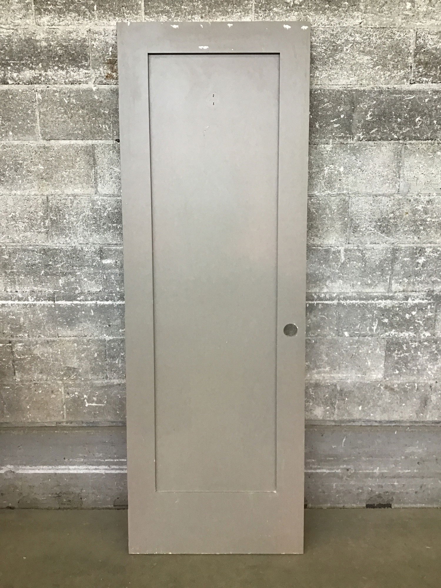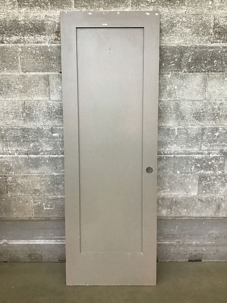 A single panel interior door with a painted medium grey finish. This would make a good bedroom door.
