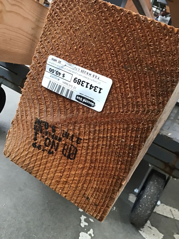 10' Long 6 x 8 beam with a grade stamp of No. 1 on a butt end, but there is a chip/split on one end. Price reflects. Green 4x12s are $11 per LF at Limback.