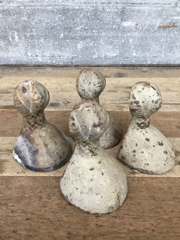 Set of four cast iron claw & ball feet from a clawfoot tub. These have a subtle and realistic scale imprint just above the feet. Overall in good shape, they just need a bit of sprucing up. Add them to your clawfoot-less tub or repurpose them as unique table legs!