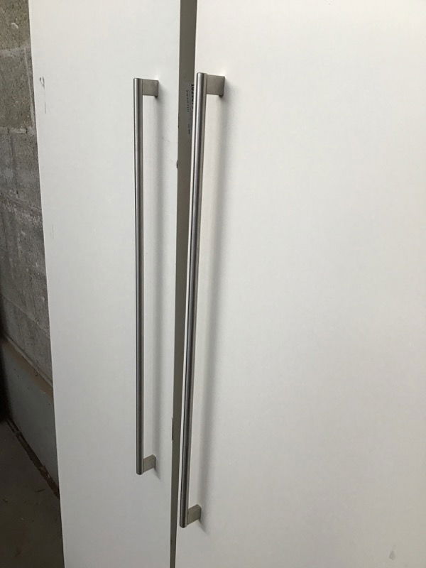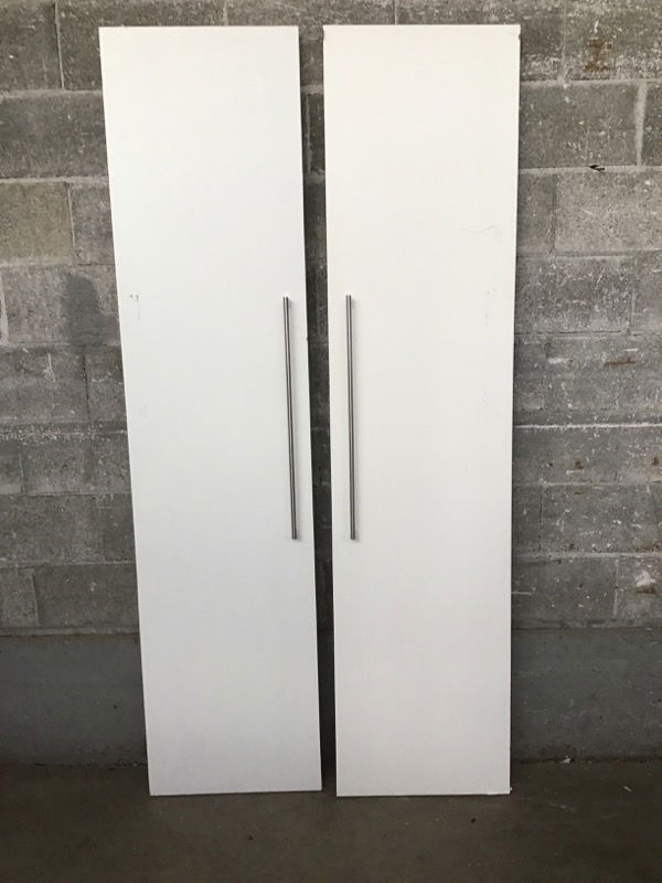 18" each, 36" total. White double doors, solid core.