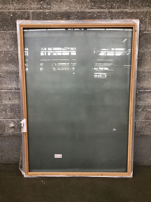 Aluminum clad fir fixed window with a high quality feel, appears to have been installed previously, still in great shape. Has obscured glass. No obvious brand or energy efficiency rating to speak of.