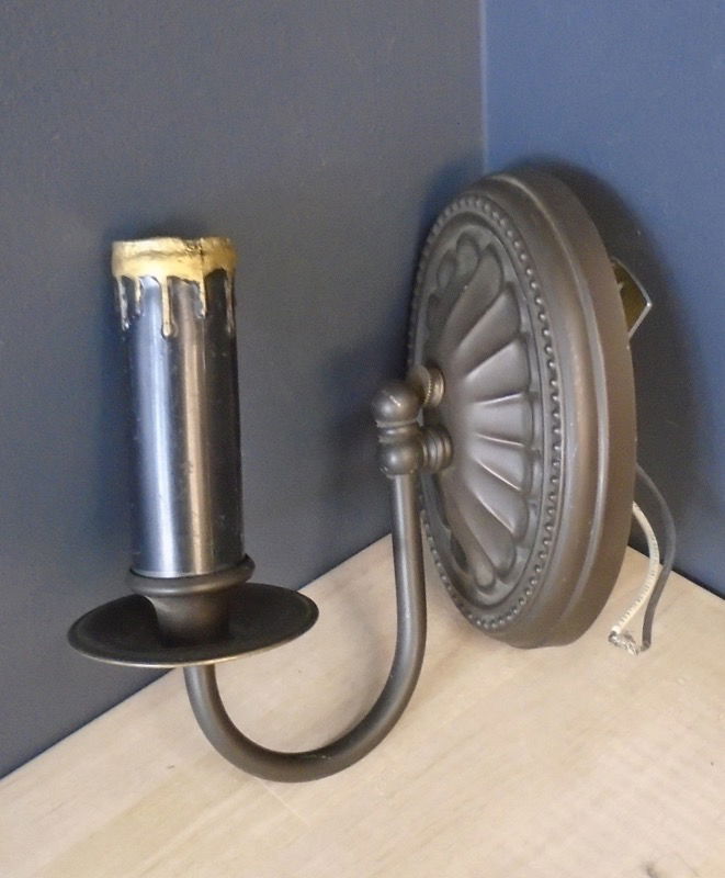 A modern version of an early 20th century wall sconce in oil rubbed bronze finish