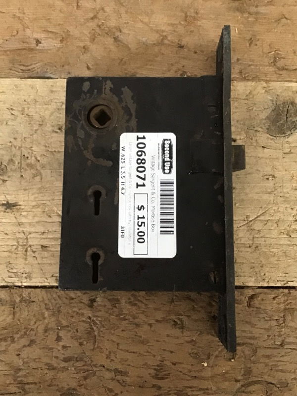 Larger vintage Sargent & Co. mortise box with two skeleton key holes. There is some paint residue that can be kept or removed. Measurements listed are for the box part, the plate is 7" high, 1.125" wide, and 3mm thick.
