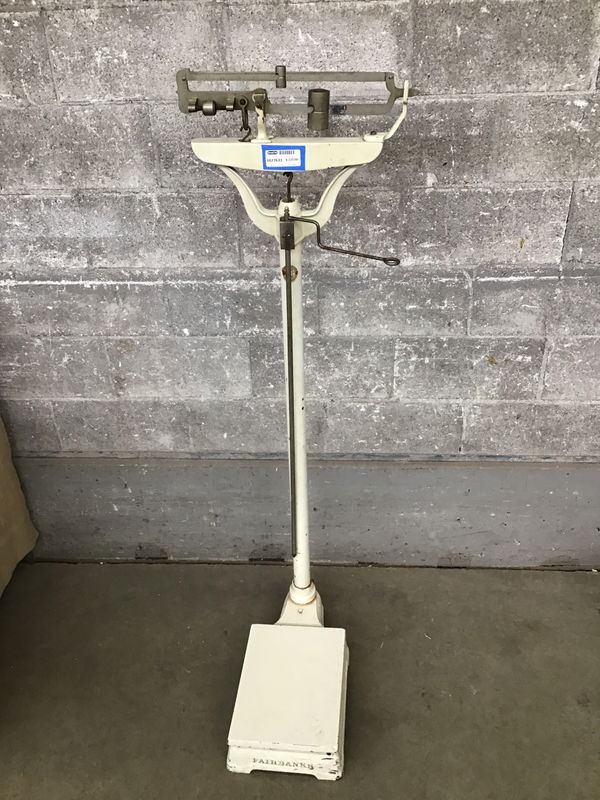 Very cool turn of the century enamel over cast iron doctor's scale, made by Fairbanks Scales. It's got it's counterweights still and an armature for measuring height. It shows it's age with some damage to the enamel, but this thing is a tank and a thing of beauty.