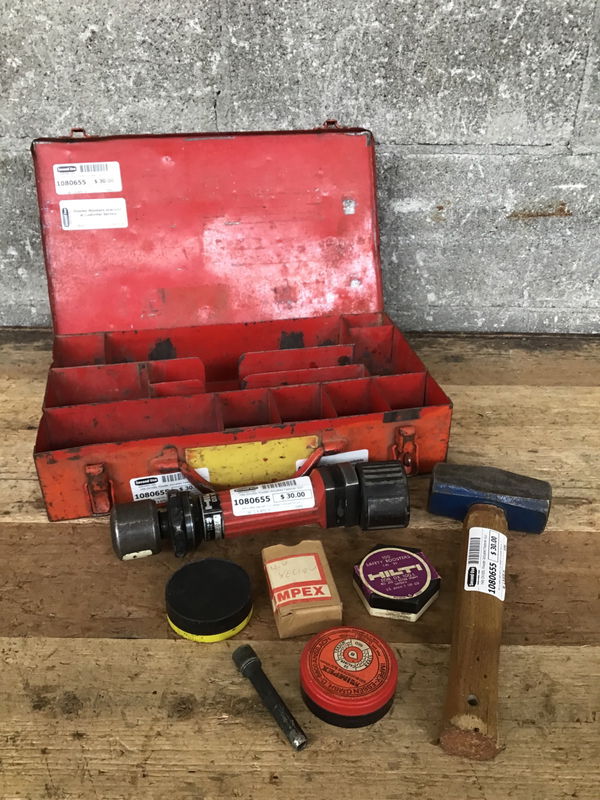 Still in steel case with 2 Lb. sledge to actuate the gun. Comes with some boosters