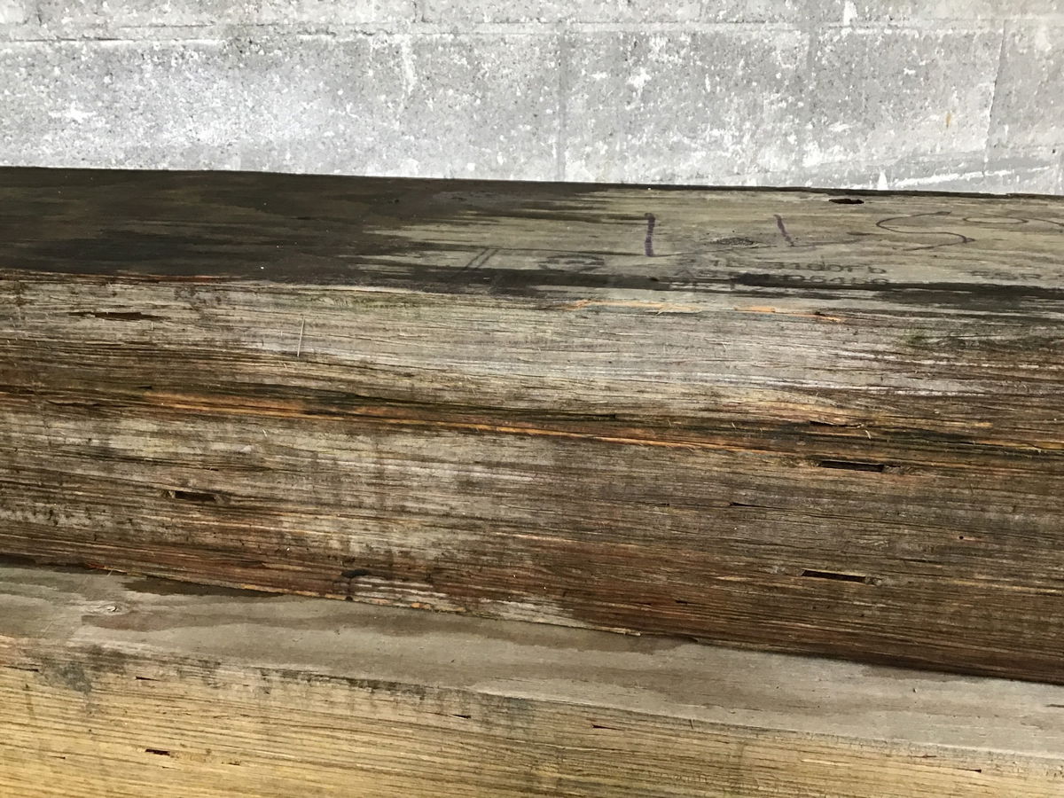 Laminated veneer lumber (LVL) beam that's just under 11' long, looks a little weathered, but structurally sound. 49.4 Board Feet
