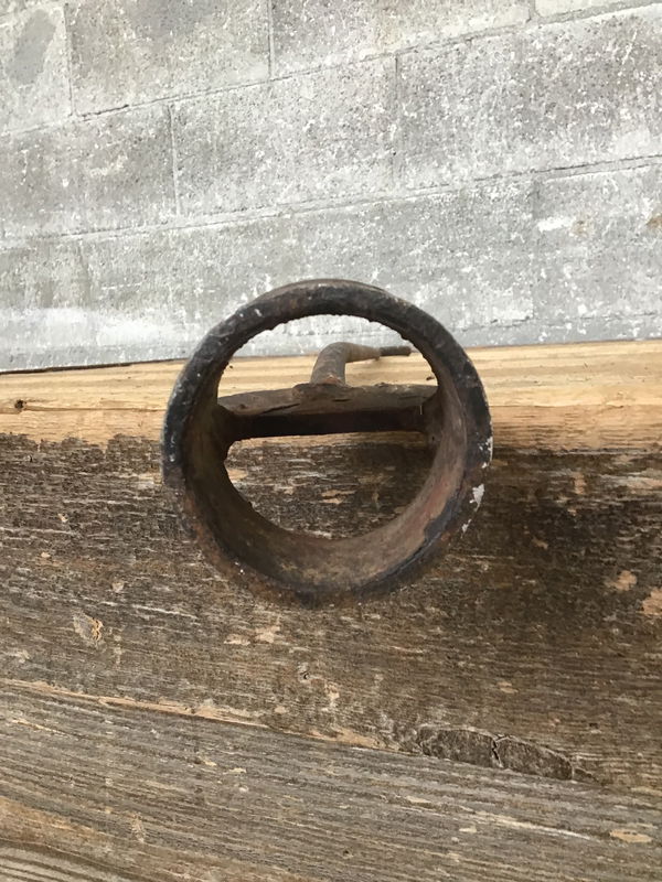 Very old wrought iron cattle brand. I have no idea what brand this is, but it's just a circle! A very neat piece of Americana that you can display down on your ranch. Please do not use this for it's original purpose!