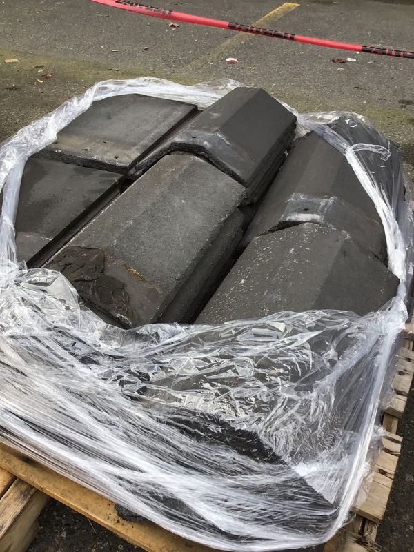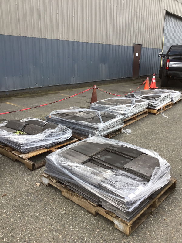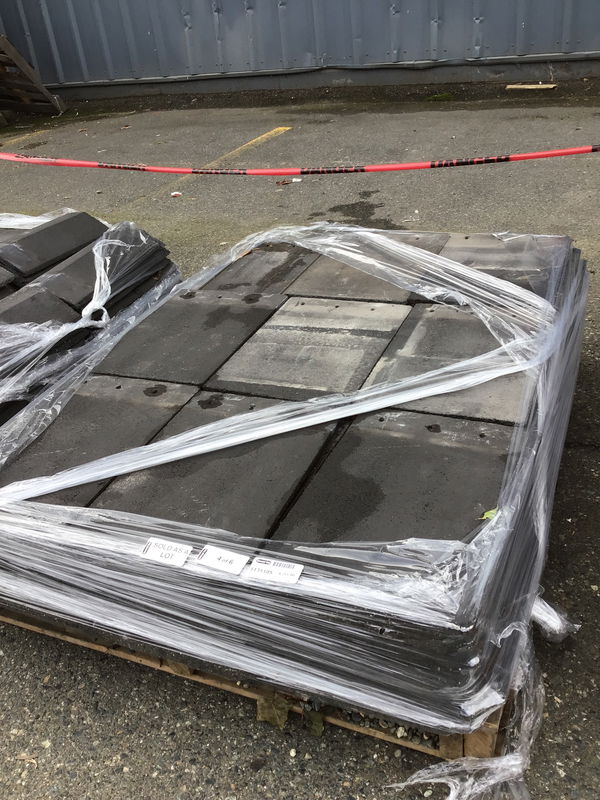 1 pallet of rectangular (16.5" x 13") tiles. From what I can see, there is minimal mortar from its previous life. This is ready to go for your shed or tiny house!
