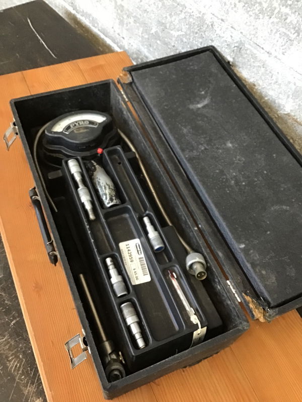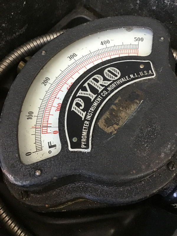 Pyrometer by Pyro Instrument Co. New Jersey. Includes original box, fittings and glass thermometer. Sold untested